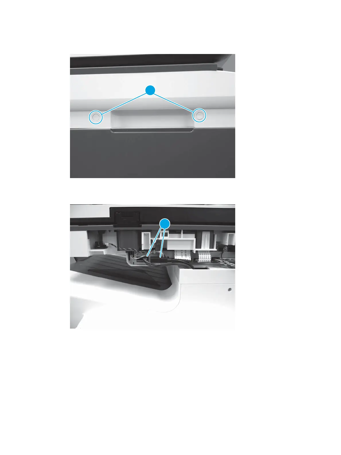 10. At the rear of the printer, connect two connectors (callout 1) to the SCB.