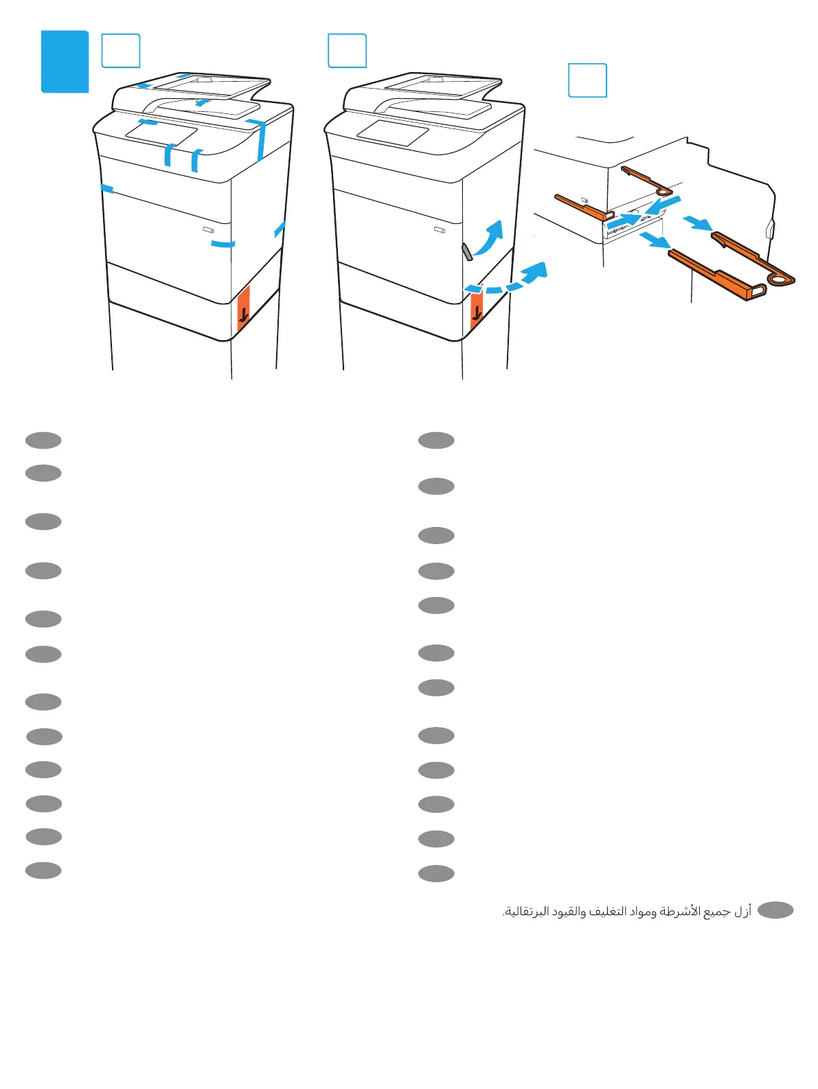 Remova todas as fitas, materiais de embalagem e retenções na cor