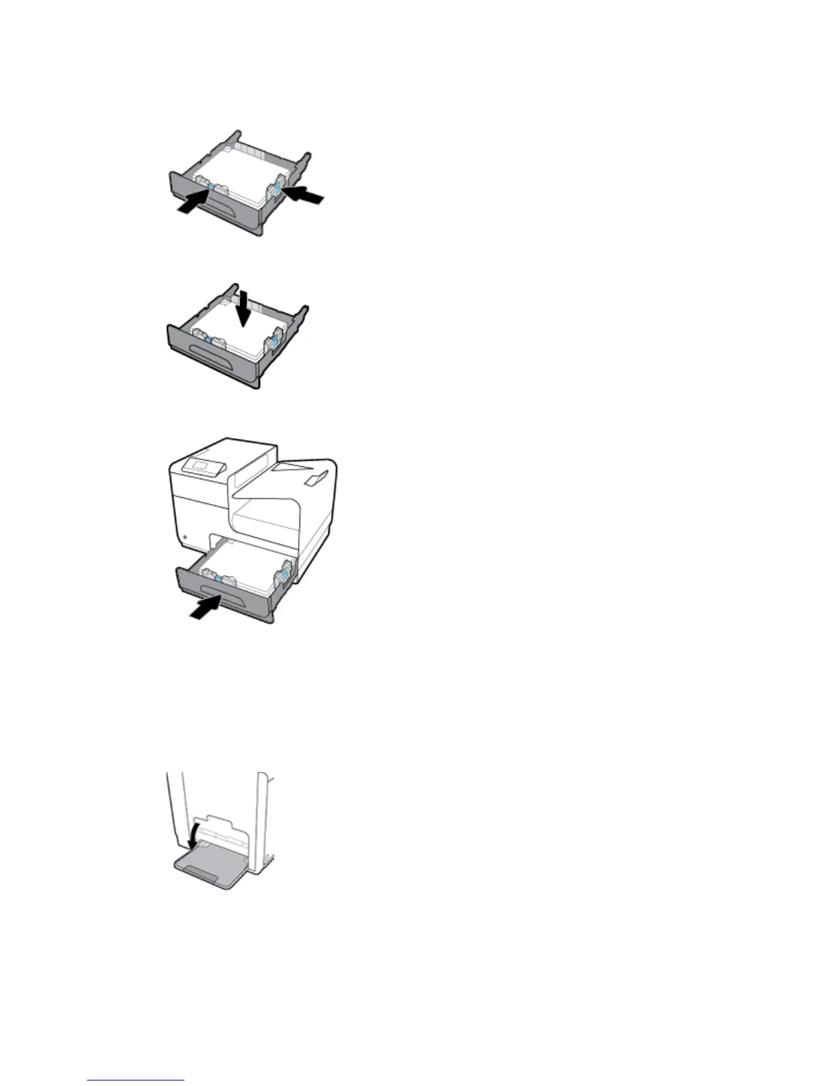4. Push down on the paper to make sure that the stack is below the paper limit tabs on the side of the tray.