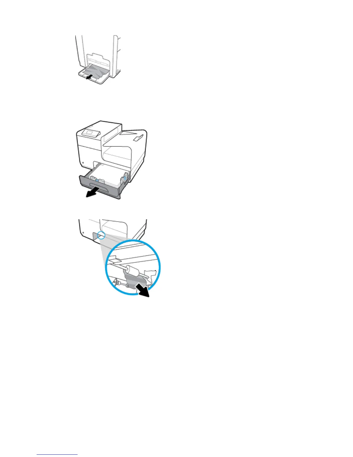 2. Remove the jammed sheet by pulling it to the right and then out of the product.