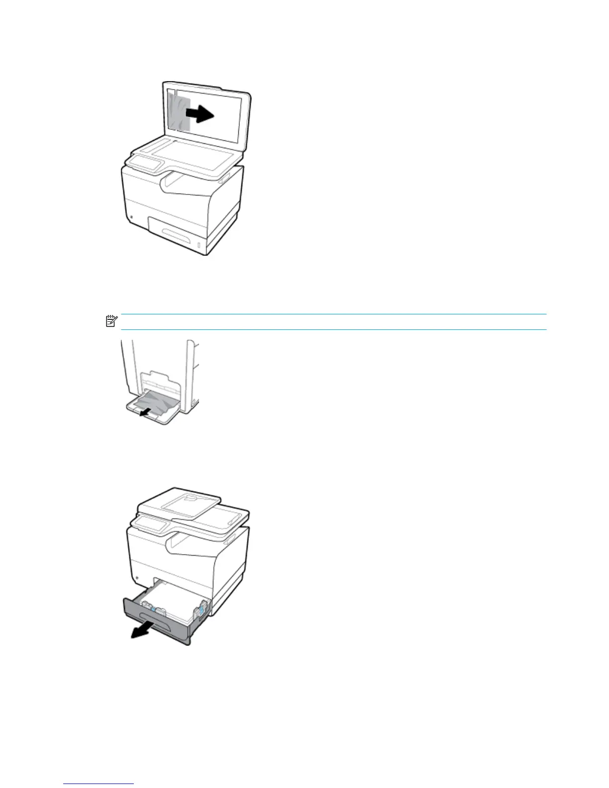 4. Open the scanner lid. If paper is jammed behind the white plastic backing, gently pull it out.