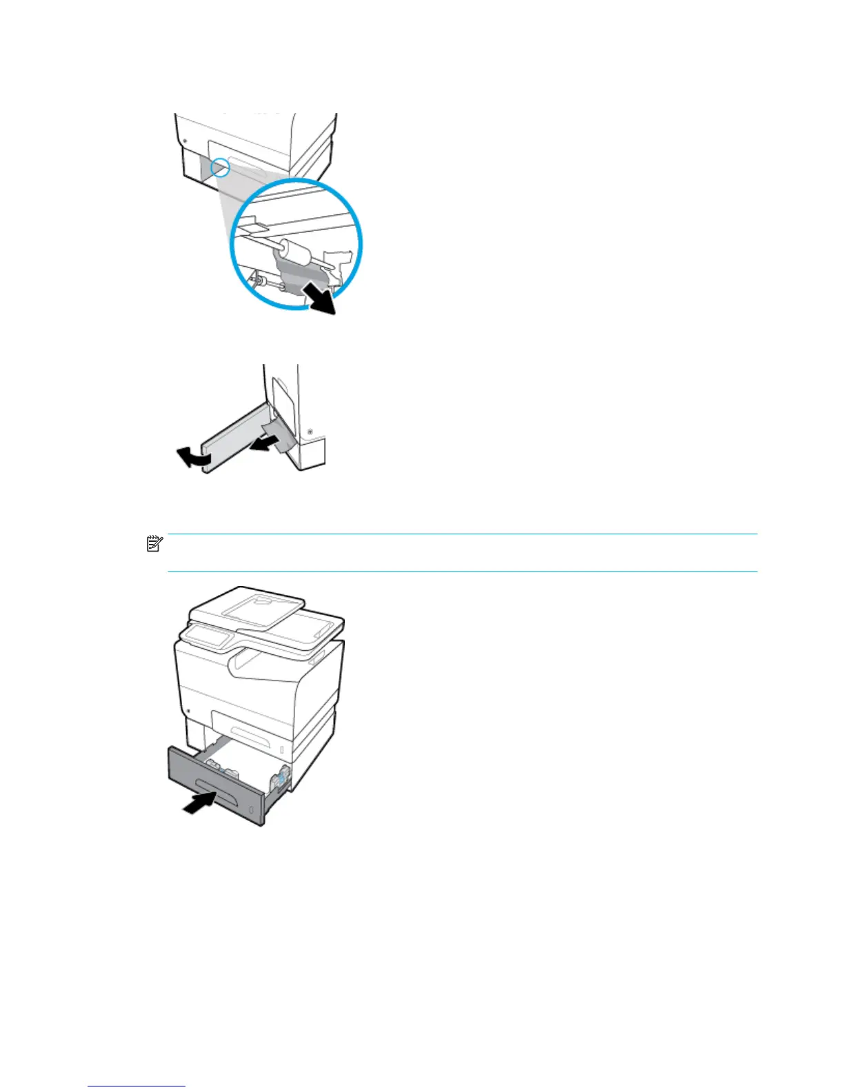 2. Remove the jammed sheet by pulling it to the right and then out of the product.