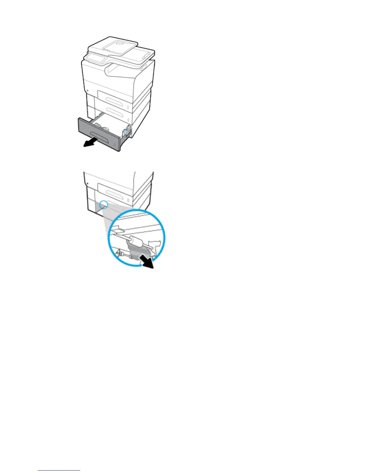 2. Remove the jammed sheet by pulling it to the right and then out of the product.