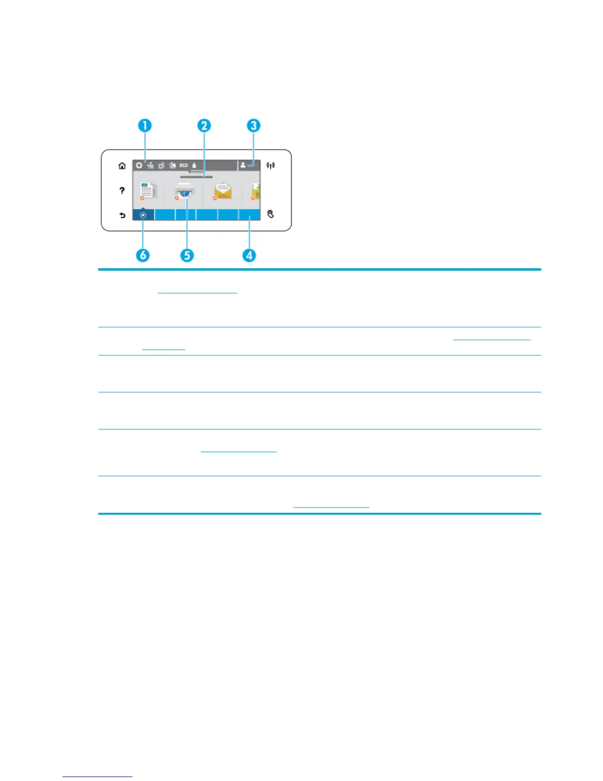 1 Dashboard. Dashboard icons show current product status and provide access to screens for changing product settings