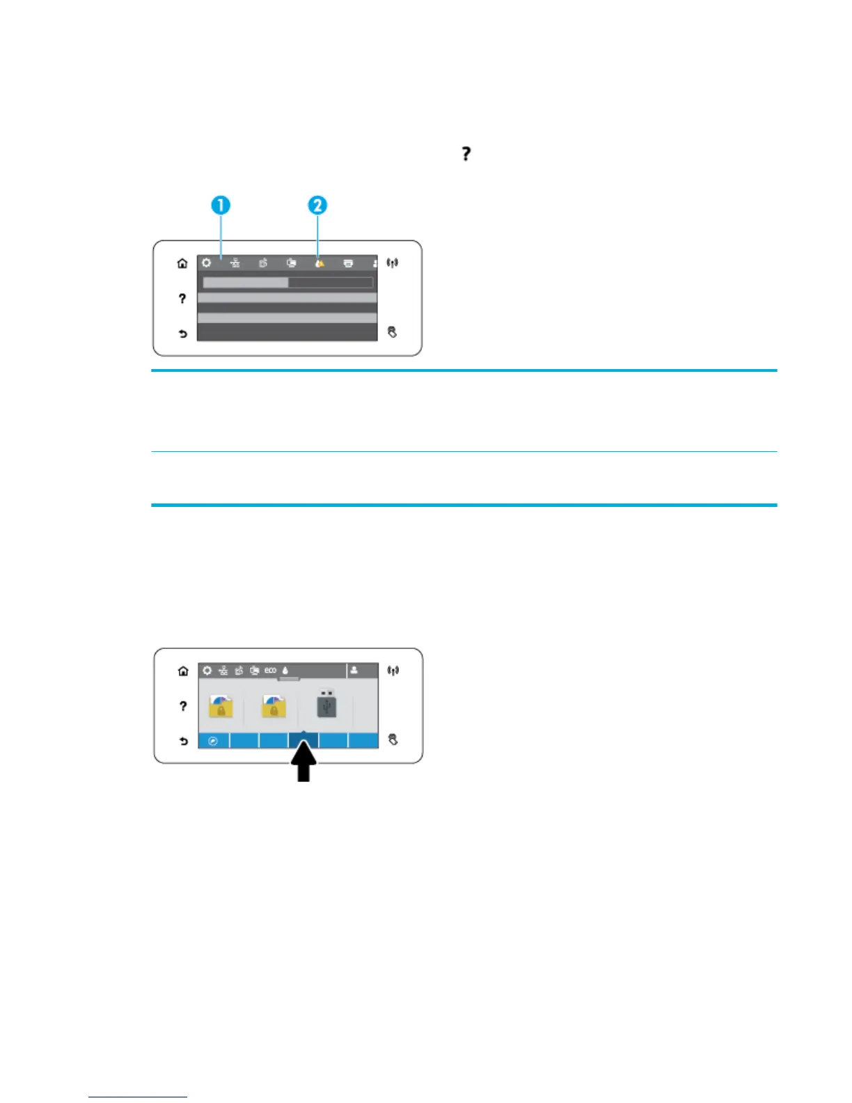 Swipe to scroll horizontally through the available icons. Touch an icon to view a status screen or to change product