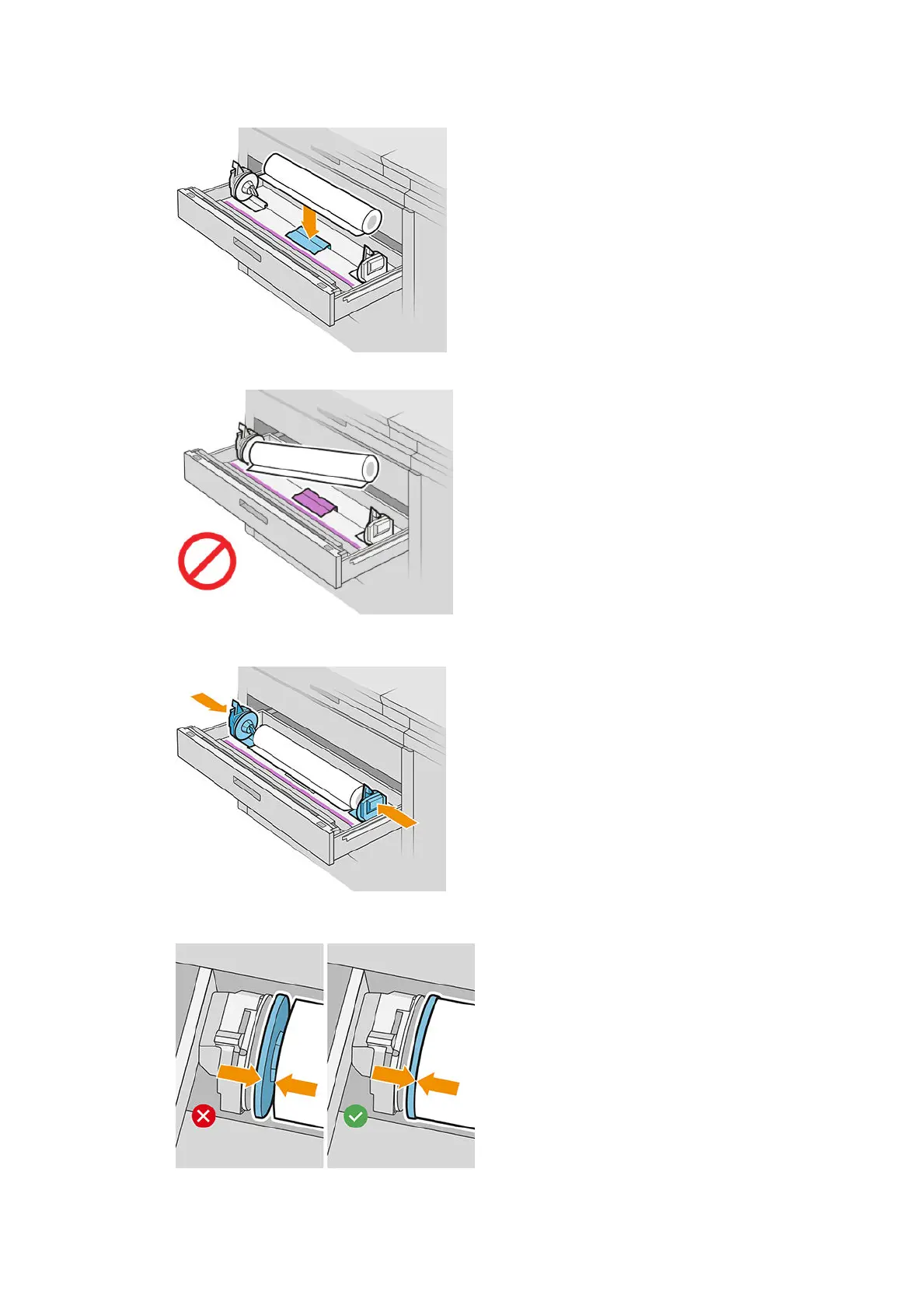 Do not load the roll at an angle, like this: