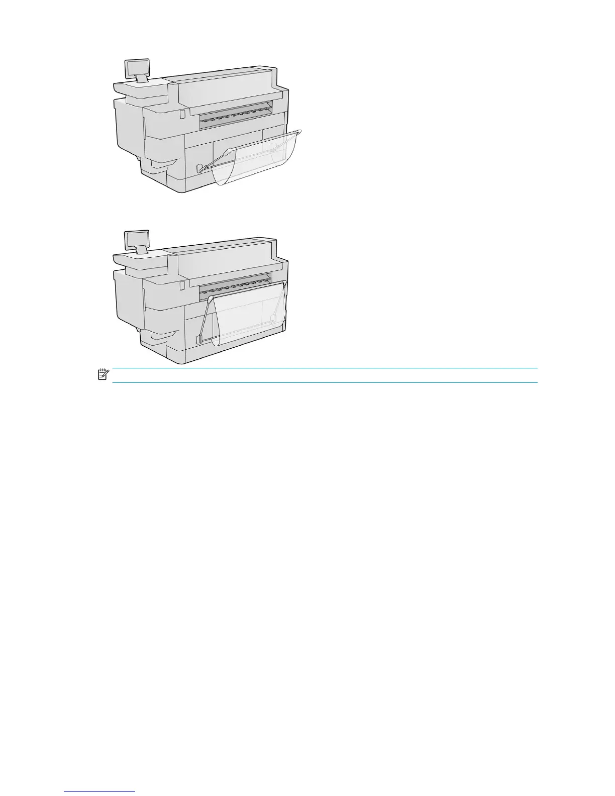 The illustration below shows the basket closed, permitting easier access to the printer (to clear printer jams,