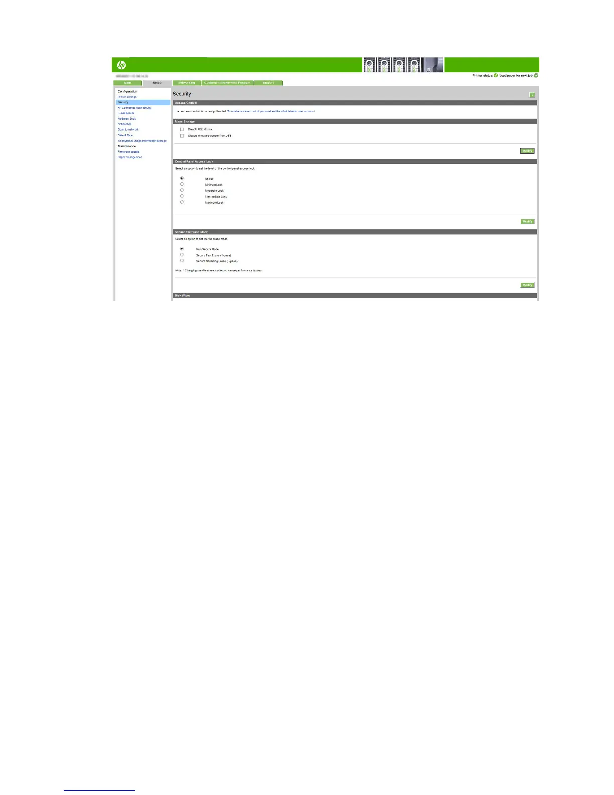 Moderate Lock: in addition to minimum lock, denies access to printer, scan, copy and print from usb.