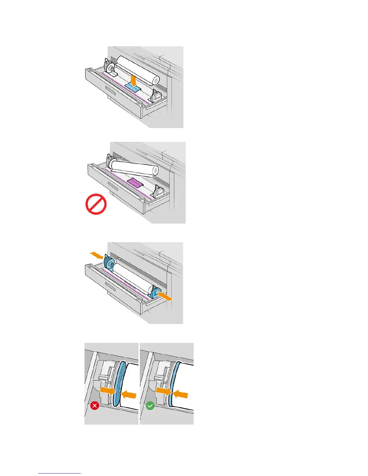 5. Place the roll into the drawer between the hubs, with the paper edge as shown.