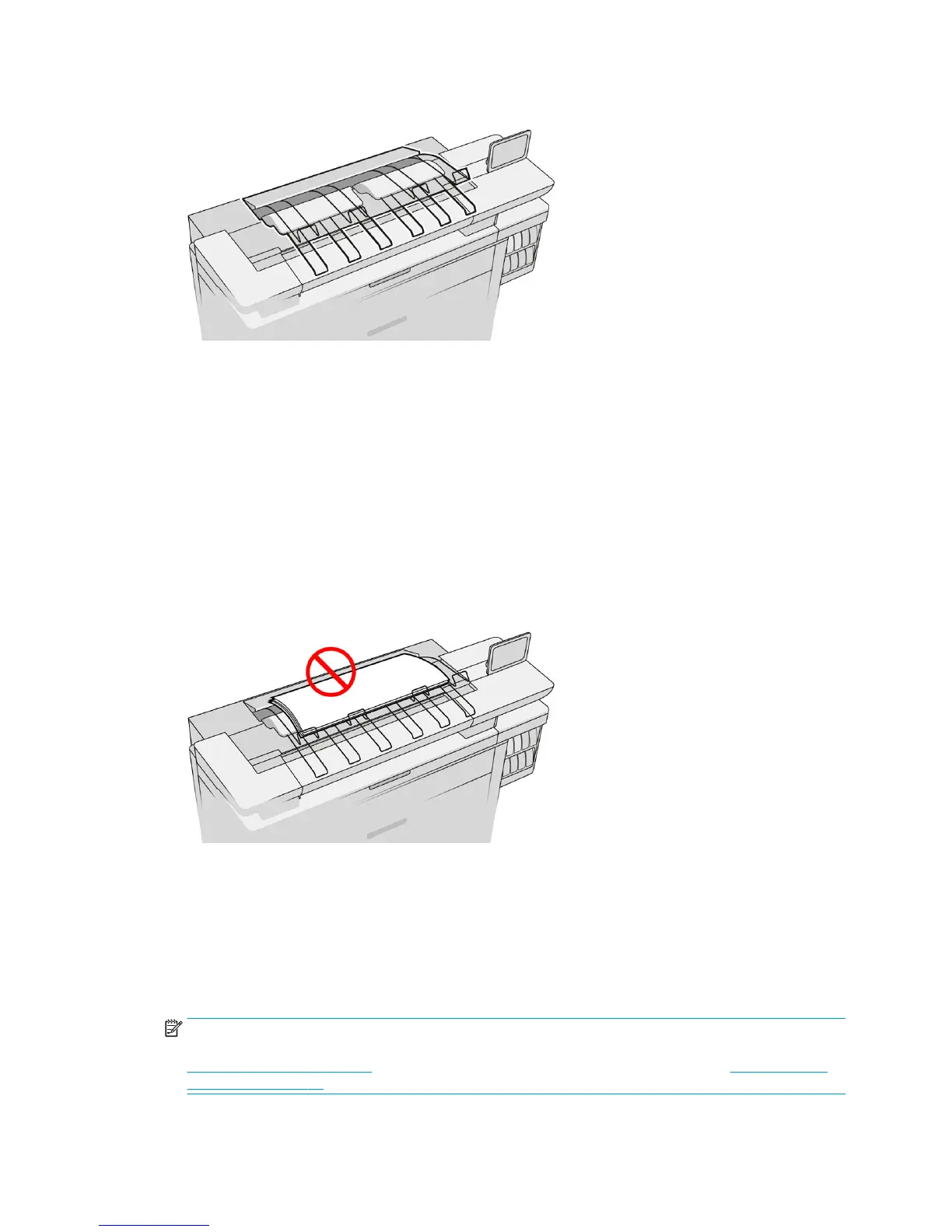 If you send pages longer than 1.2 m (4 ft) to the stacker, you are recommended to stand by the stacker to