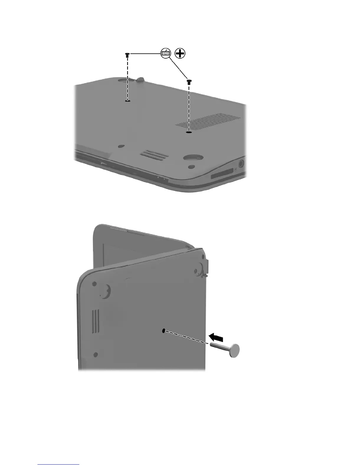 2. Remove the two Phillips 2.0×6.0 screws keyboard screws from the bottom of the computer.