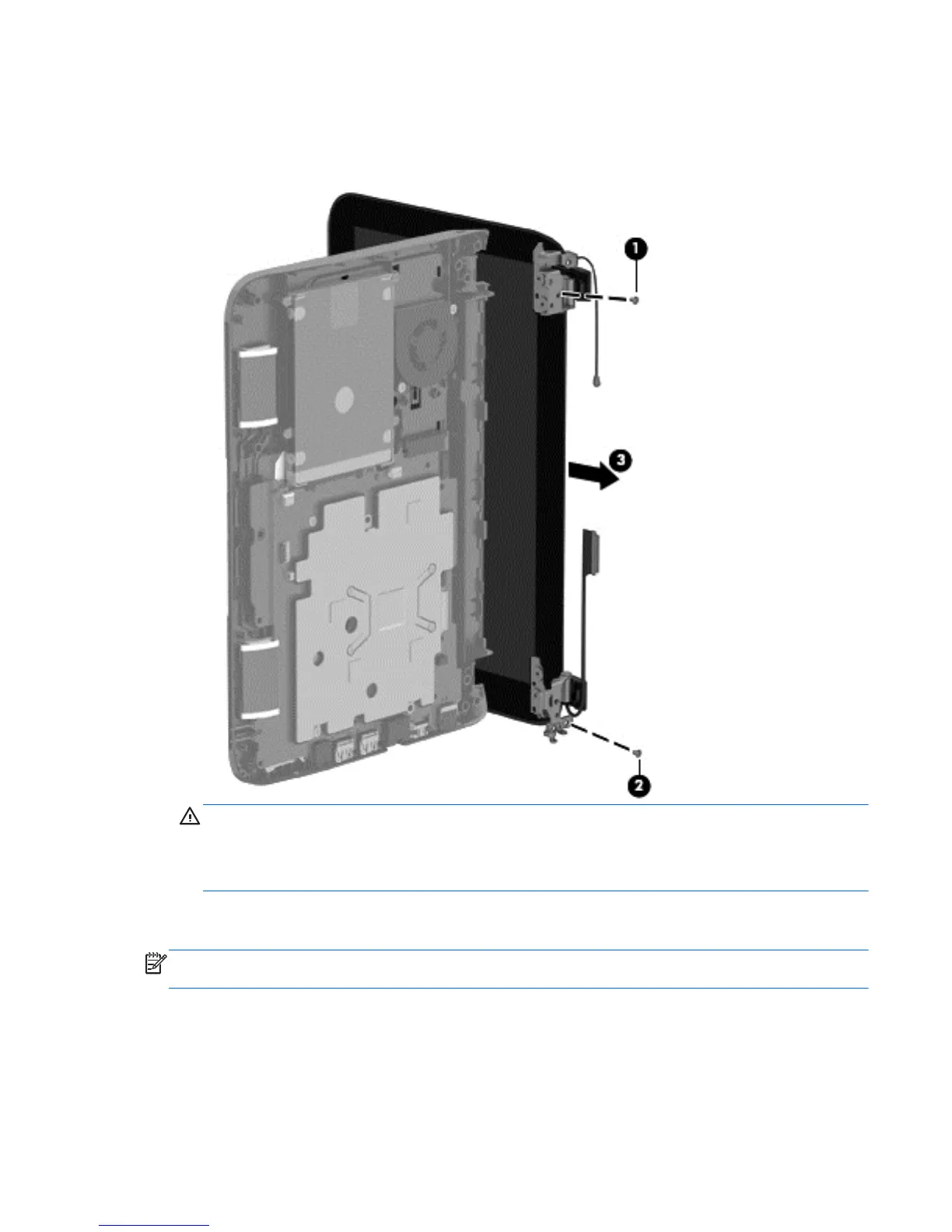 CAUTION: When installing the display assembly, be sure that the wireless antenna cables are