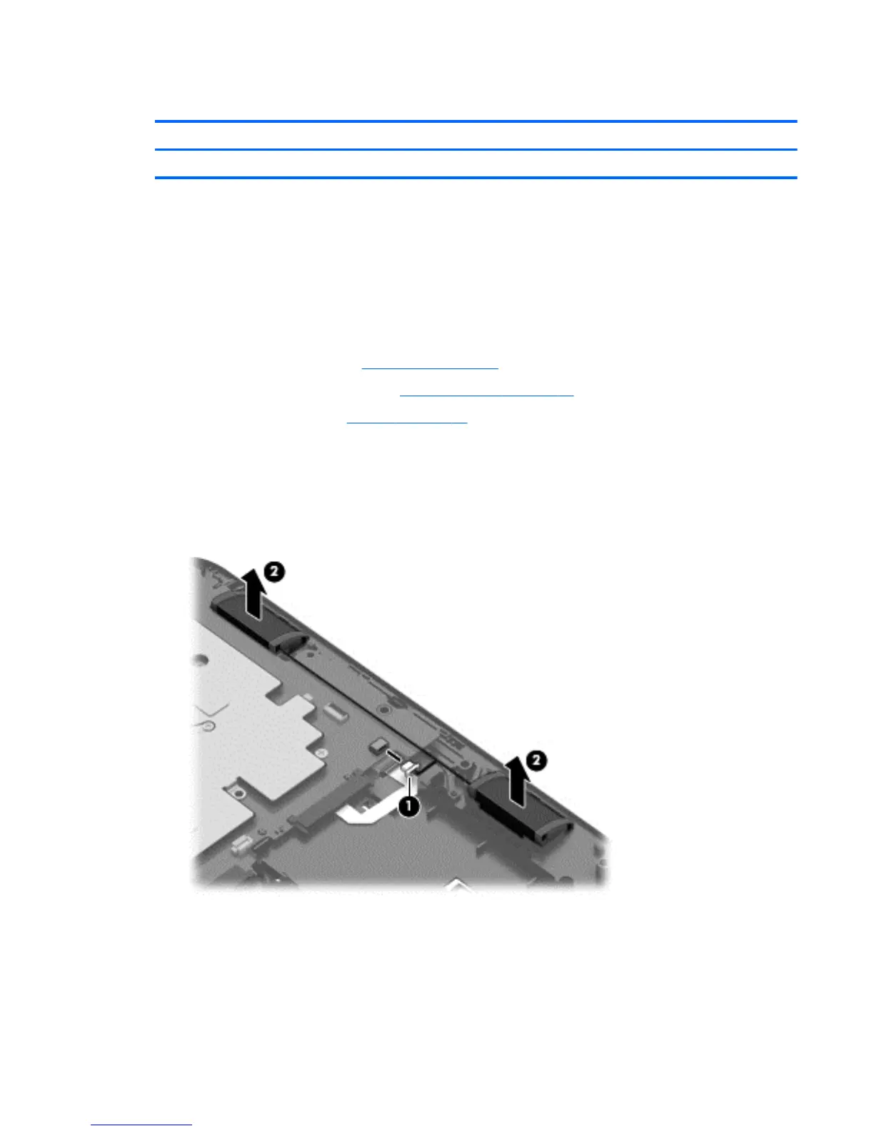 3. Remove the tape that holds the speaker wires in place and carefully lift the speakers (2).