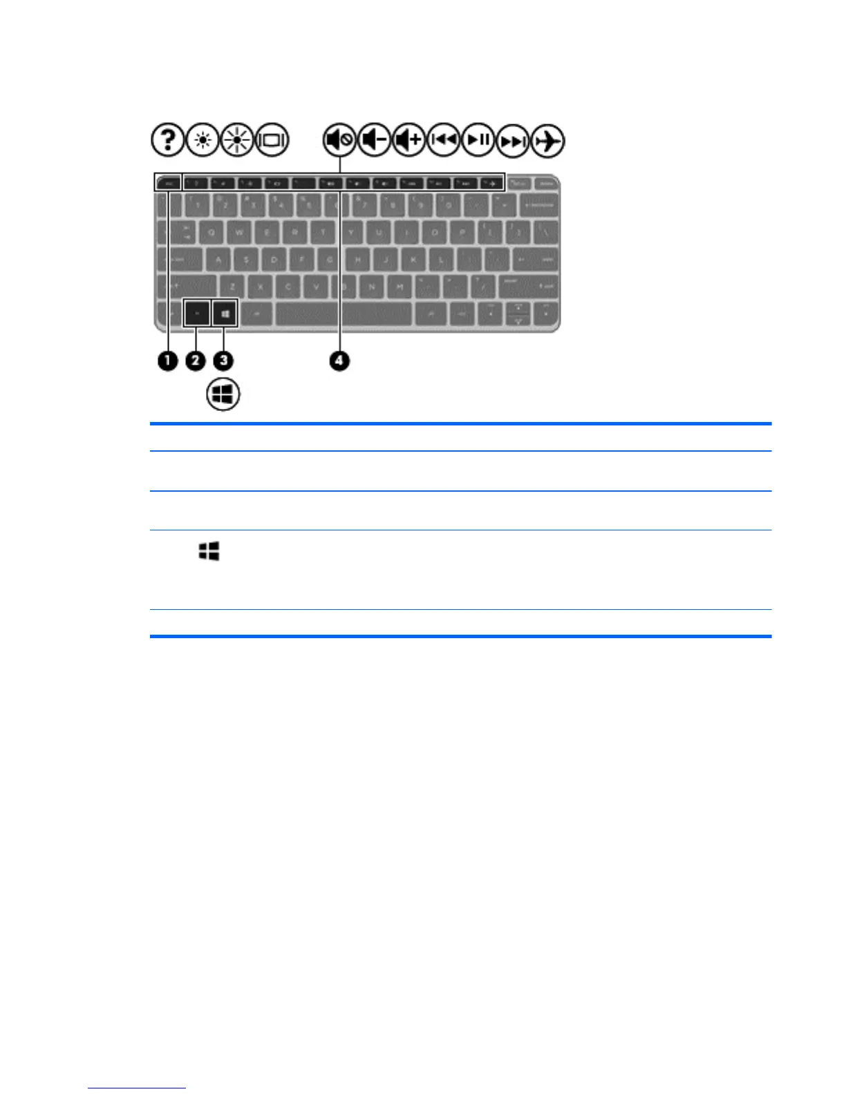 Windows key Returns you to the Start screen from an open app or the