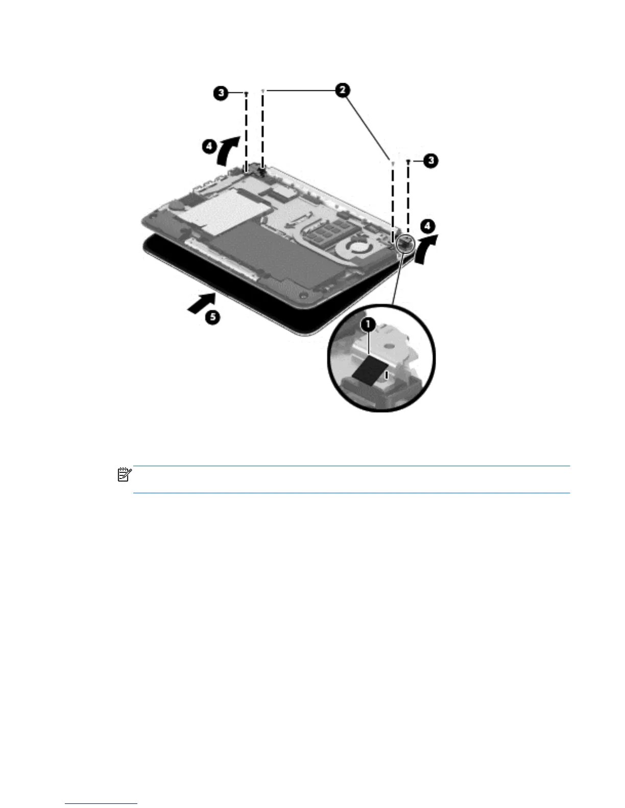 7. Separate the display assembly from the computer (5).