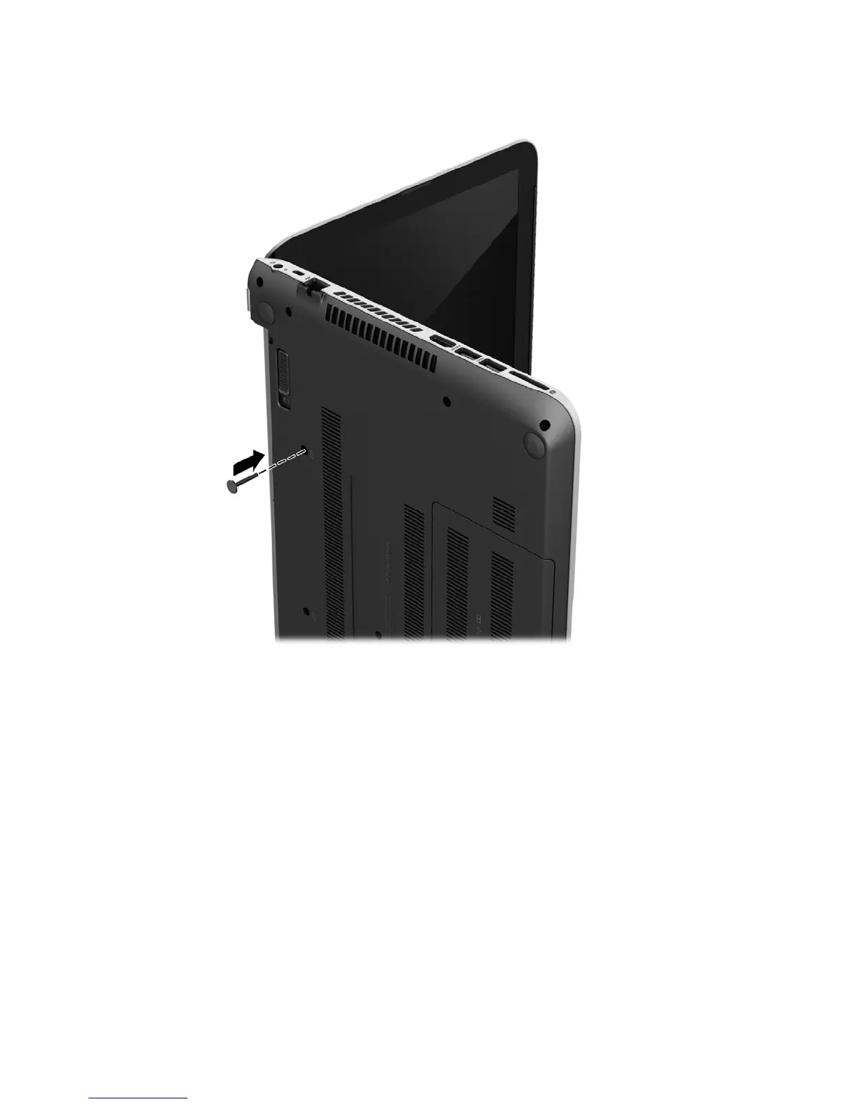 4. Insert a thin tool or a keyboard push tool into the left retention screw hole, and then press on