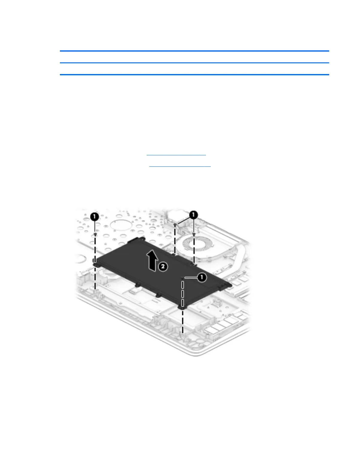 1. Remove the four Phillips PM2.0×4.5 screws (1) that secure the battery to the keyboard/top cover.