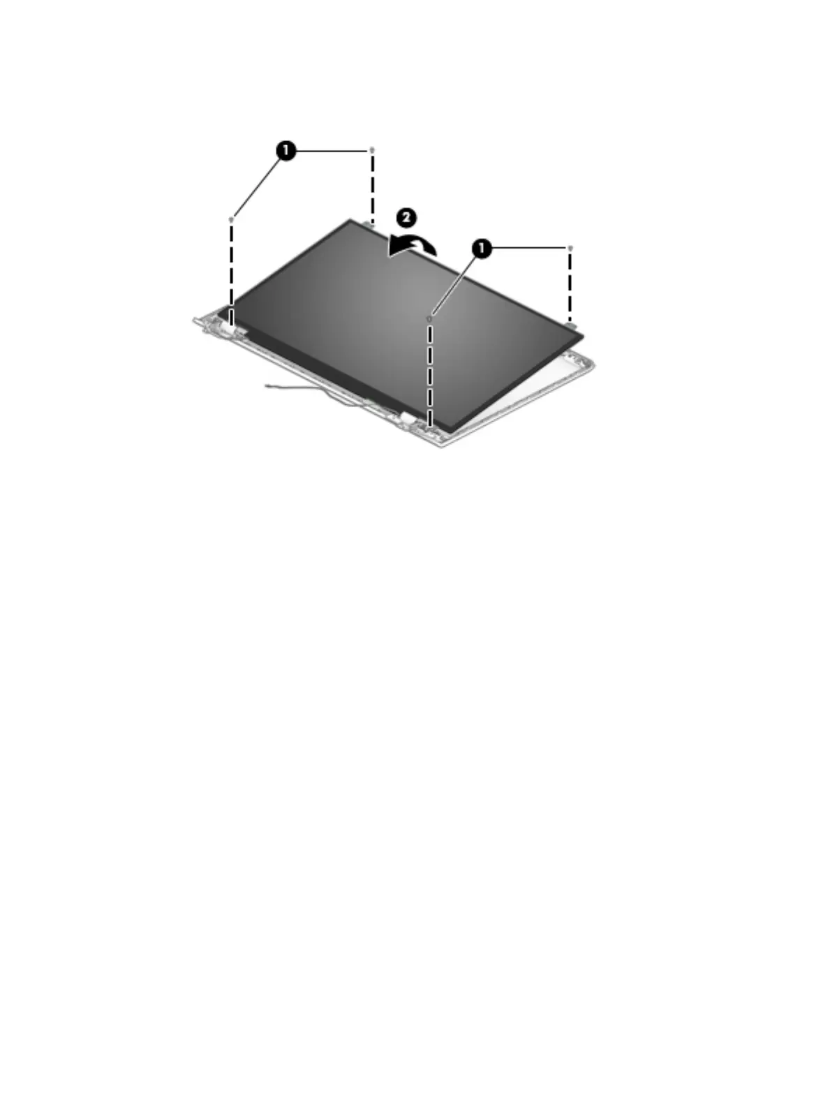 c. Swing the top edge of the display panel (2) up and forward until the display panel rests upside