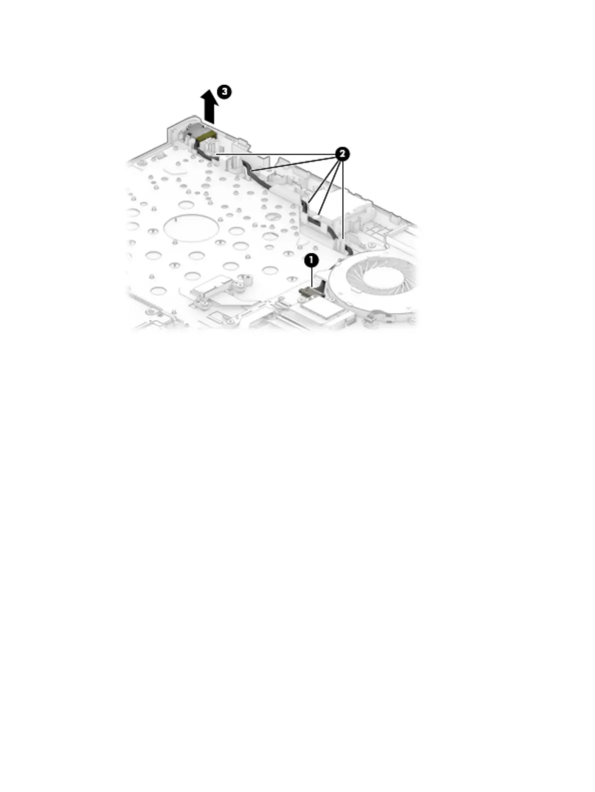 3. Remove the power connector (3) from the molding built into the keyboard/top cover.
