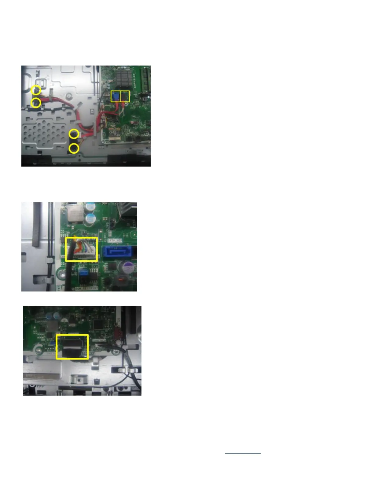 Remove the cable with circles in red and remove 4pcs screws with circles in yellow.