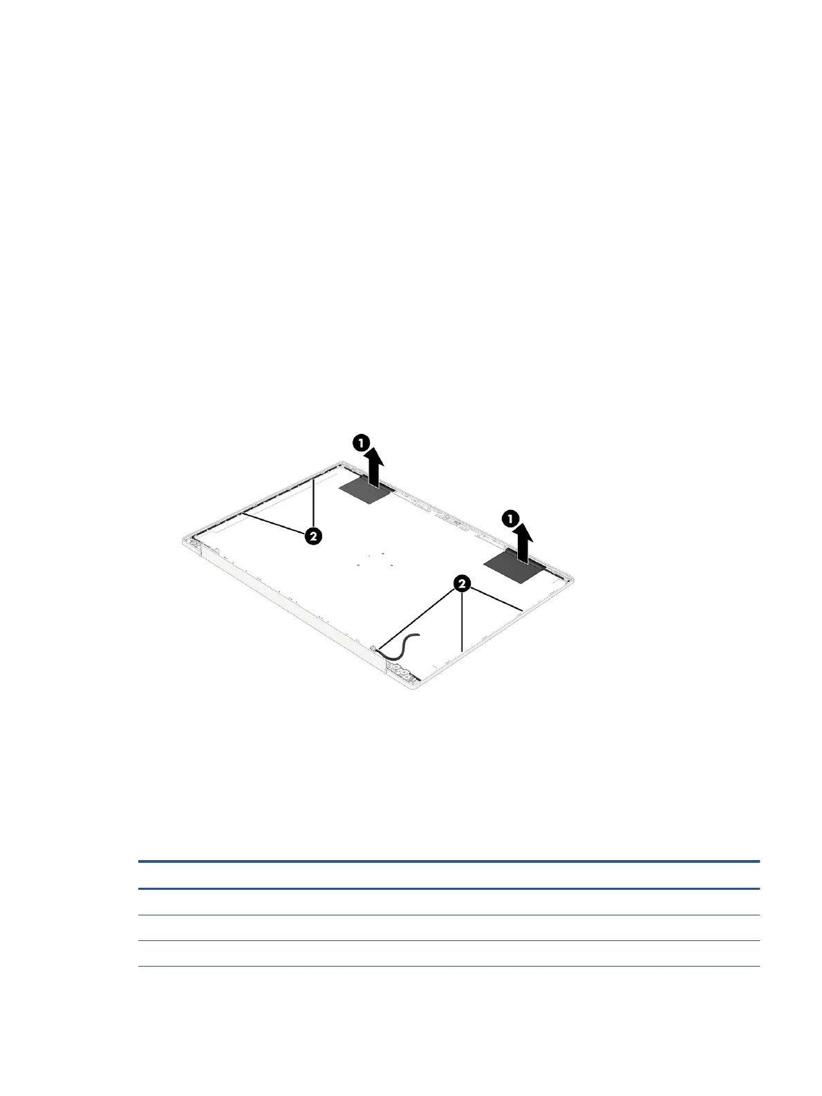 13. Peel the wireless antennas (1) o the display back cover. The antennas are secured with adhesive.