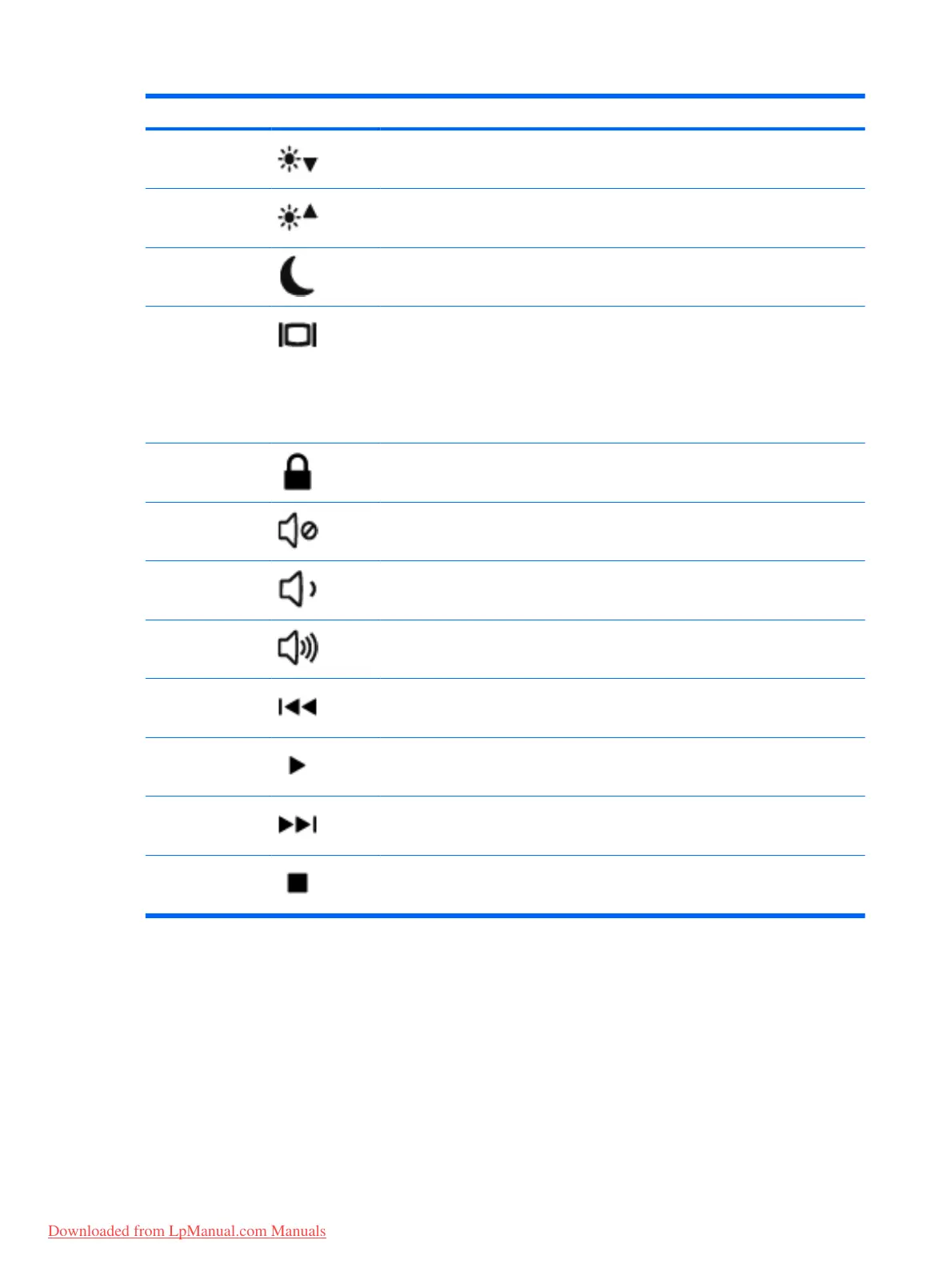 Next track Plays the next track of an audio CD or the next section of the DVD or BD.