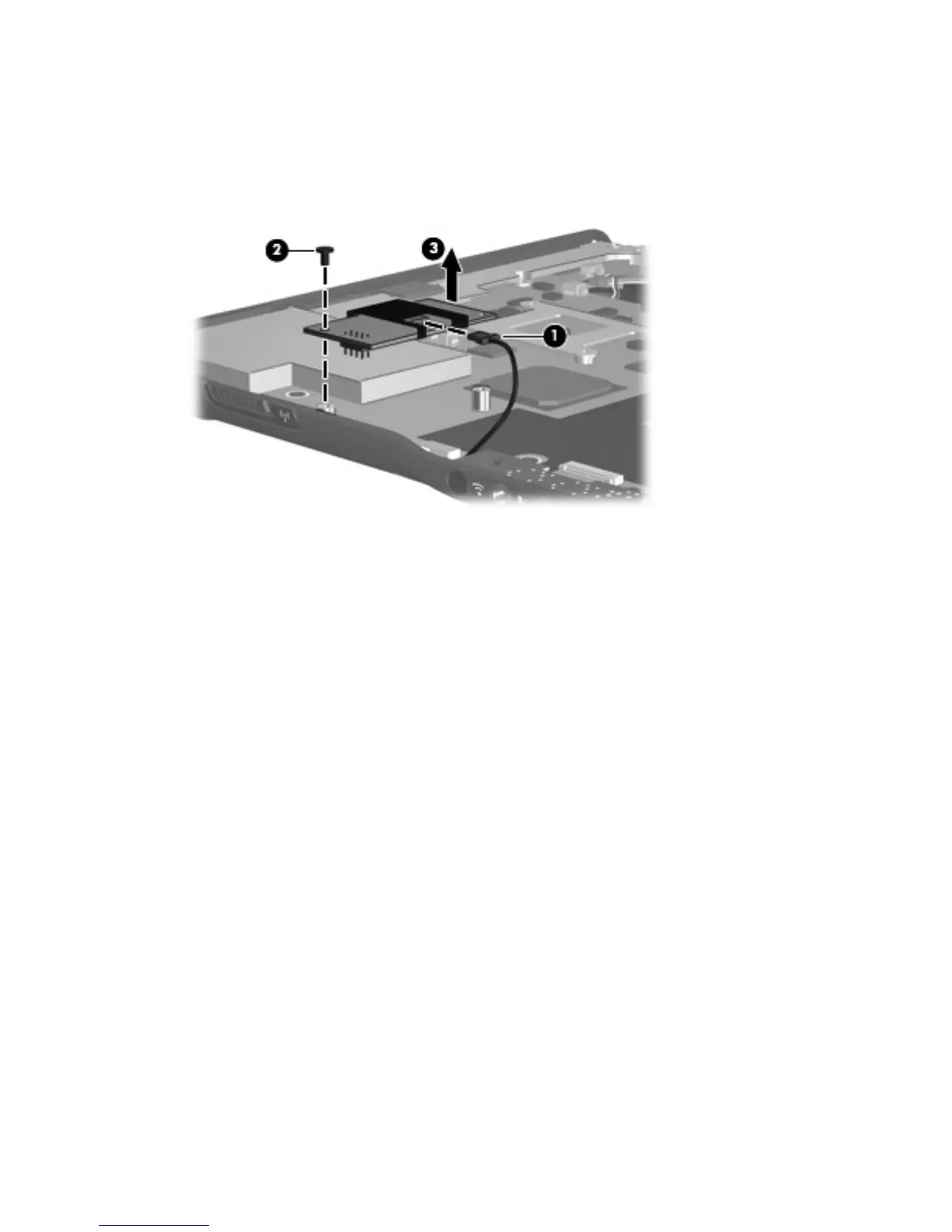 2. Remove the Phillips PM2.0×6.0 screw (2) that secures the modem module to the system board.