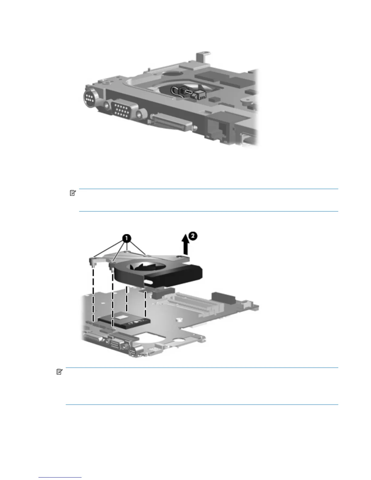 assembly and system board components, it may be necessary to move the fan/heat sink assembly