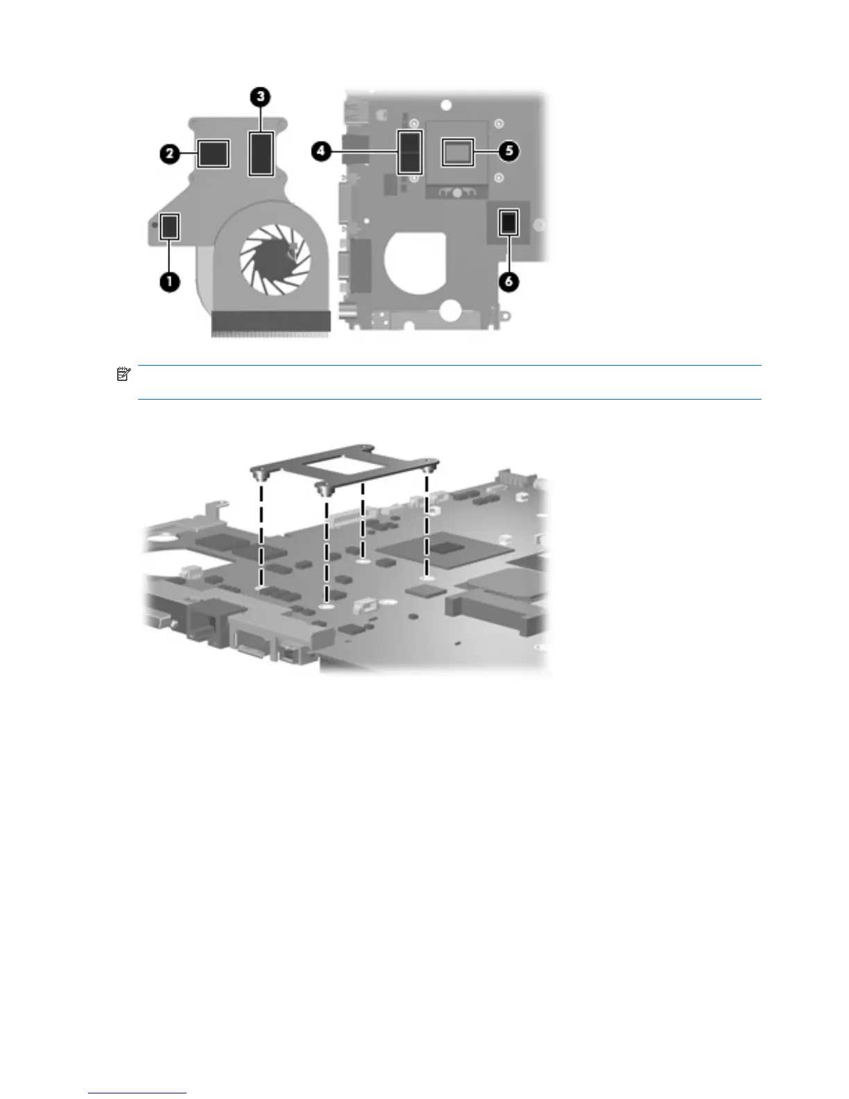 NOTE: The fan/heat sink assembly mounting bracket must be replaced as shown in the following
