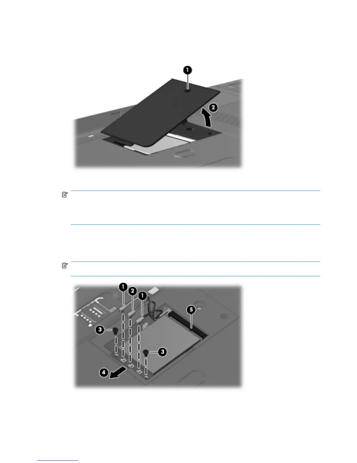 NOTE: WLAN modules are designed with a notch (5) to prevent incorrect installation into the