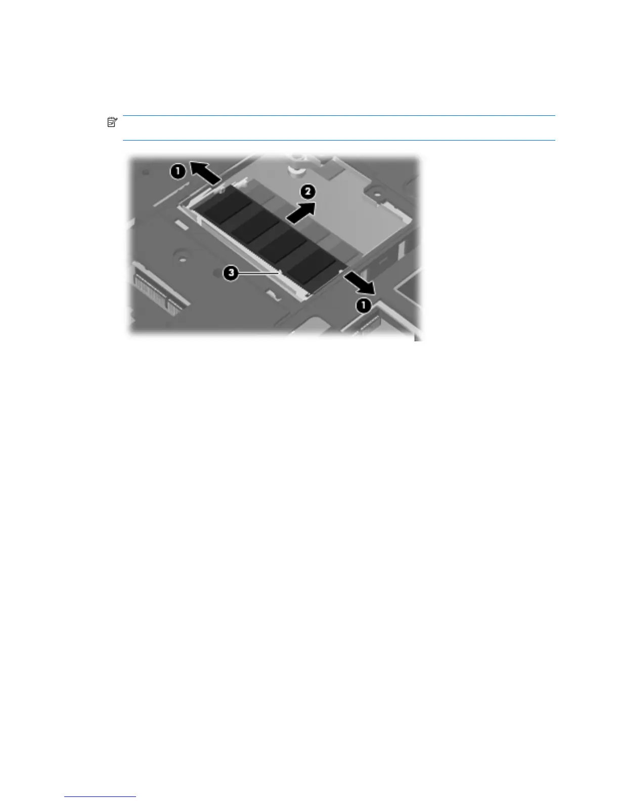 4. Spread the retaining tabs (1) on each side of the memory module slot to release the memory module.