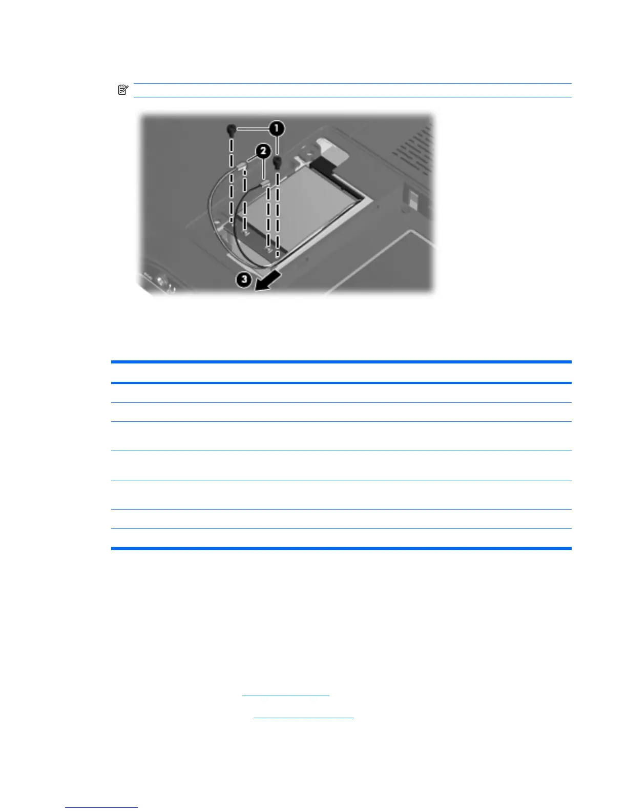 3. Remove the WWAN module (3) by pulling the module away from the slot at an angle.