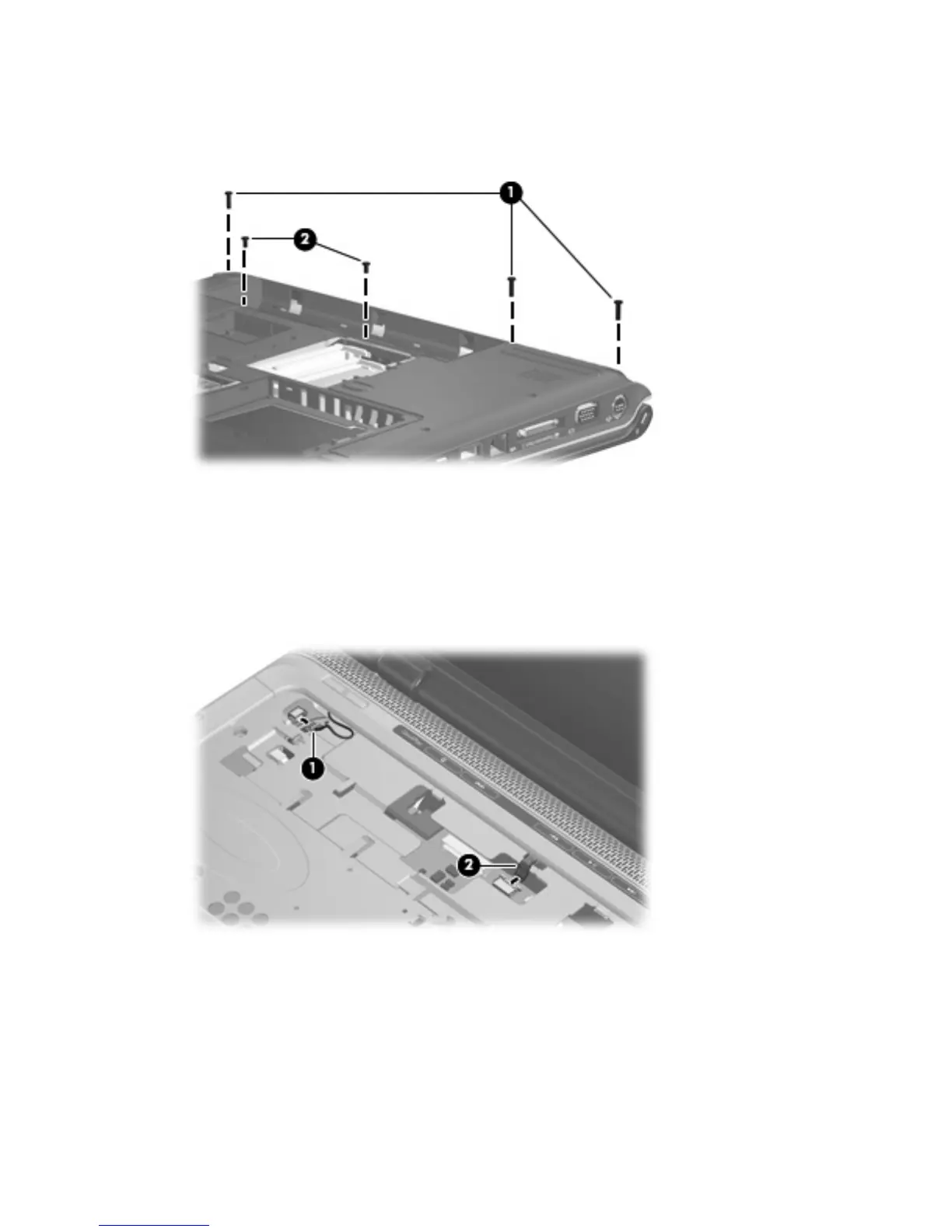 1. Remove the three Phillips PM2.5×9.0 screws (1) and the silver Phillips PM2.5×5.0 screw (2) that