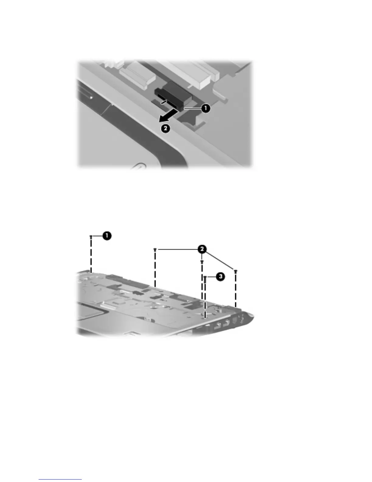 5. Release the ZIF connector (1) to which the TouchPad cable is connected and disconnect the cable