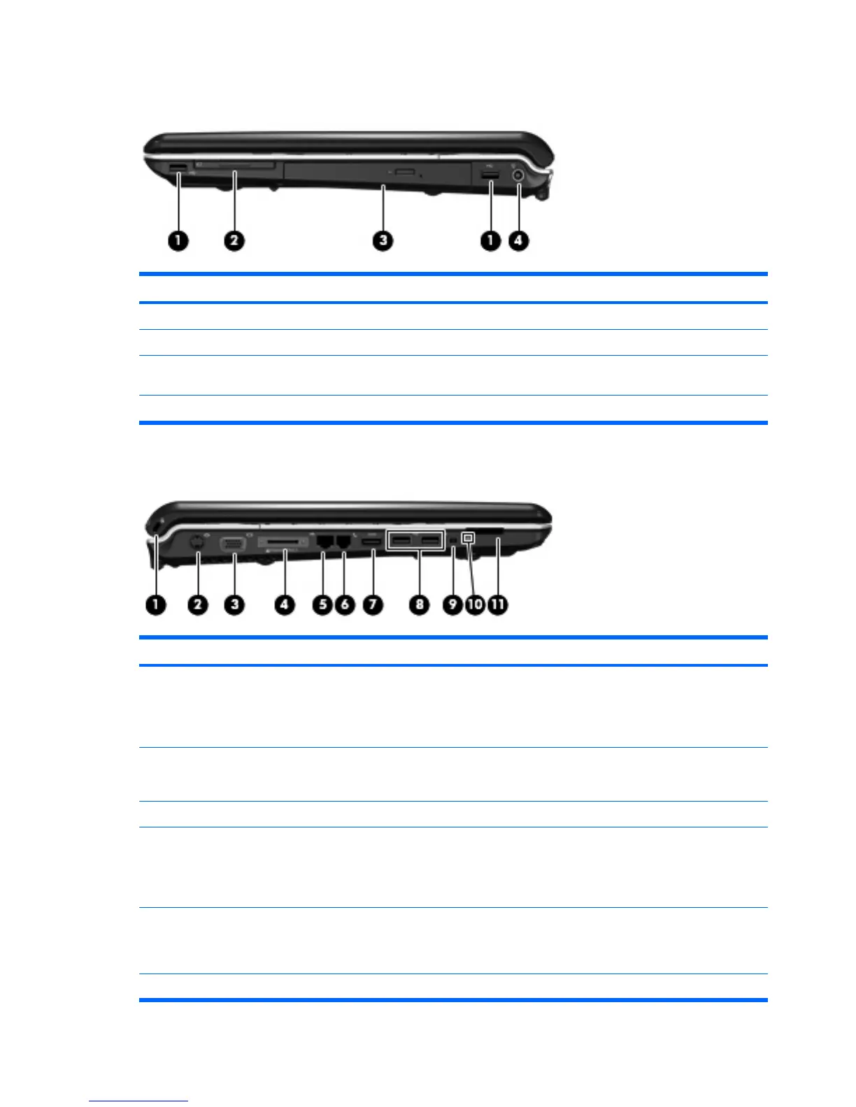 USB ports (select models only) Connect optional USB devices.
