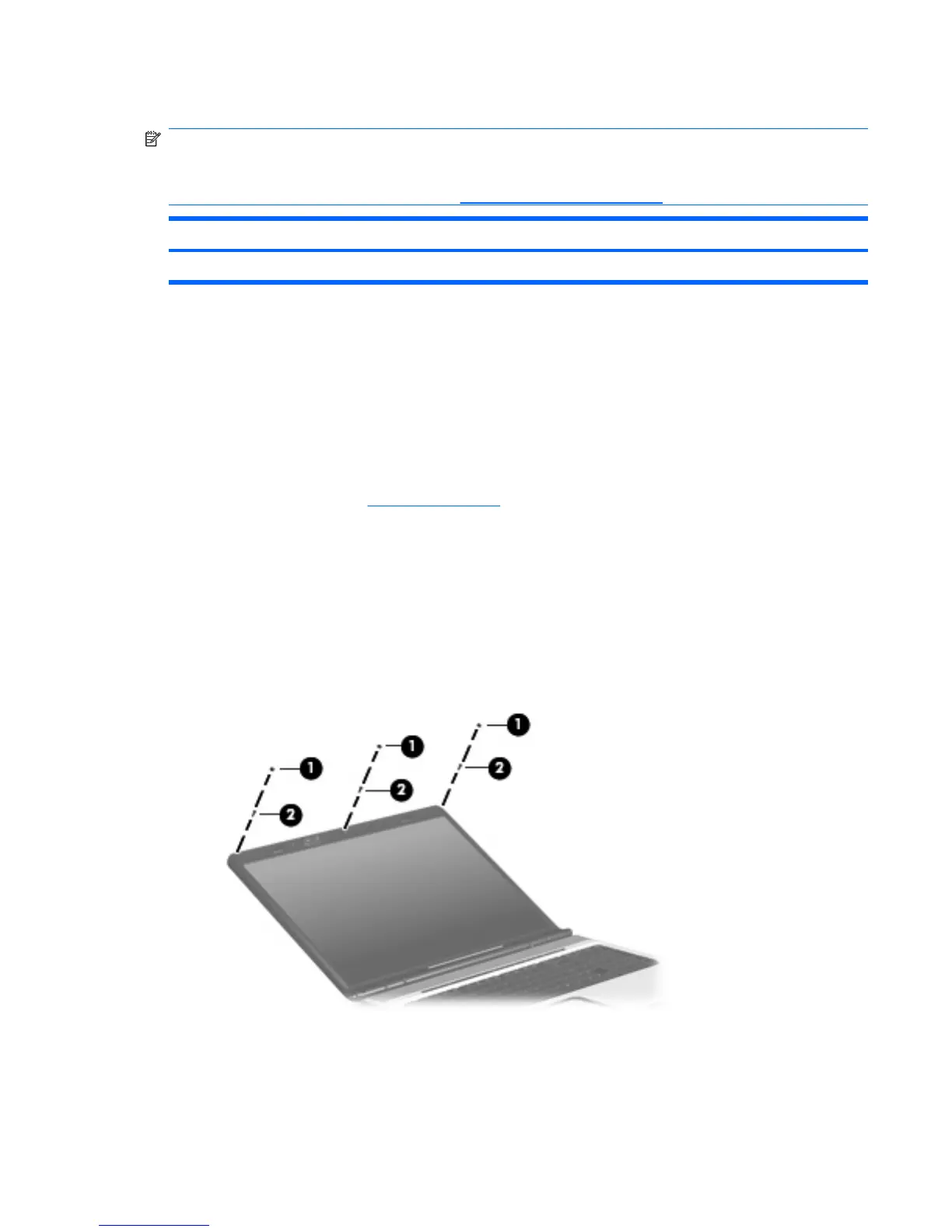 4. Remove the three Phillips PM2.5×8.0 screws (2) on the display bezel top edge.