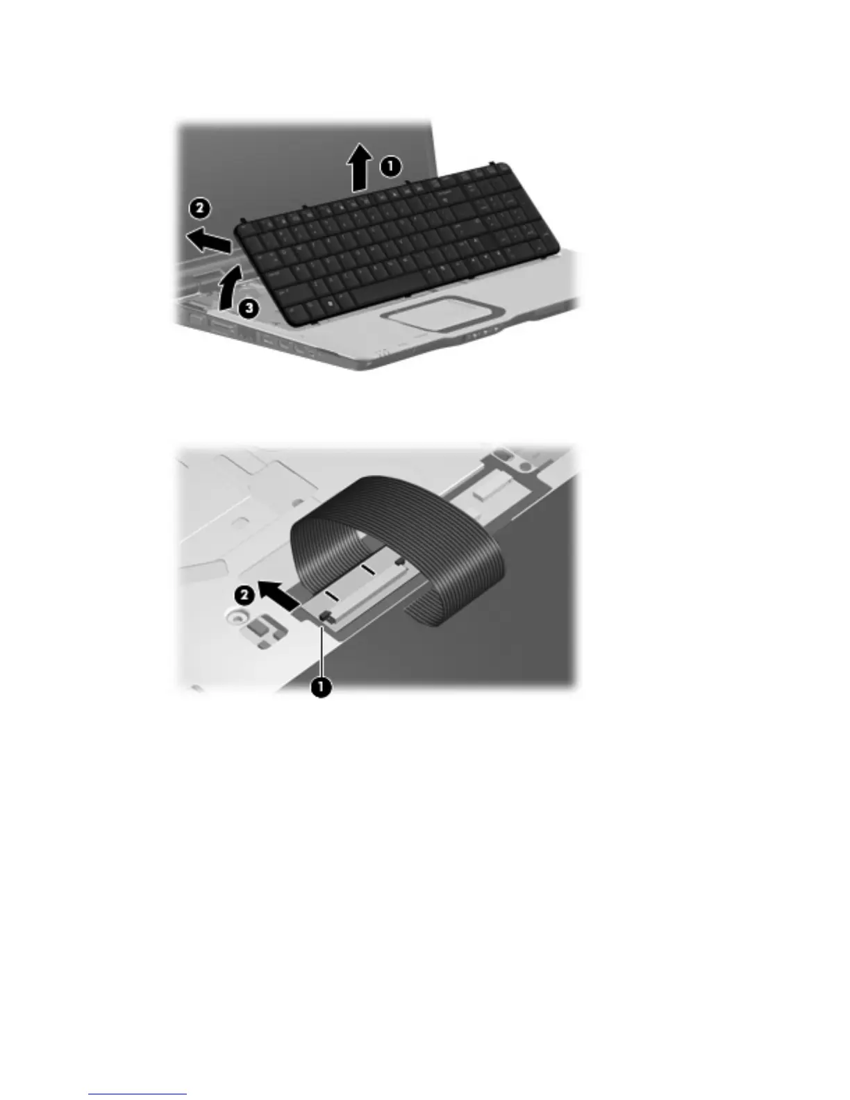 9. Release the ZIF connector (1) to which the keyboard cable is attached and disconnect the keyboard