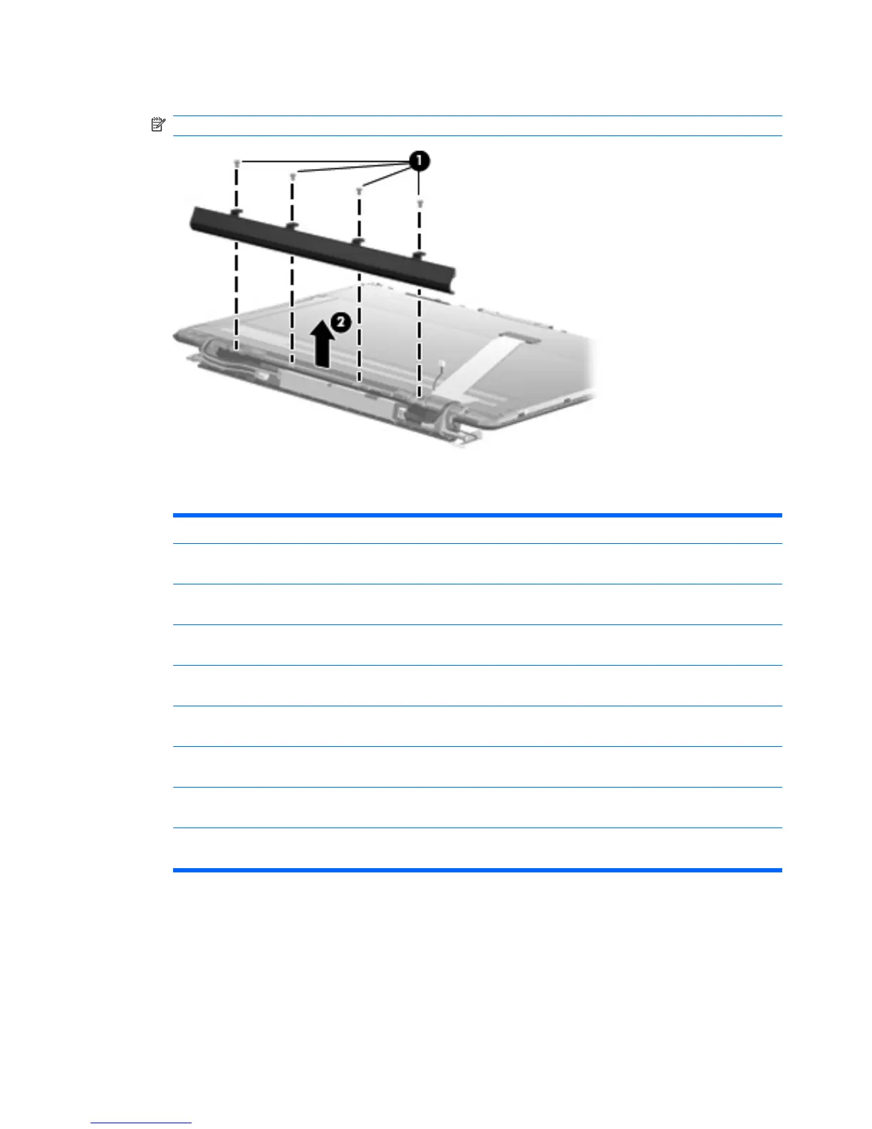 12. Remove the display enclosure. The display enclosure table below identifies the correct part to use