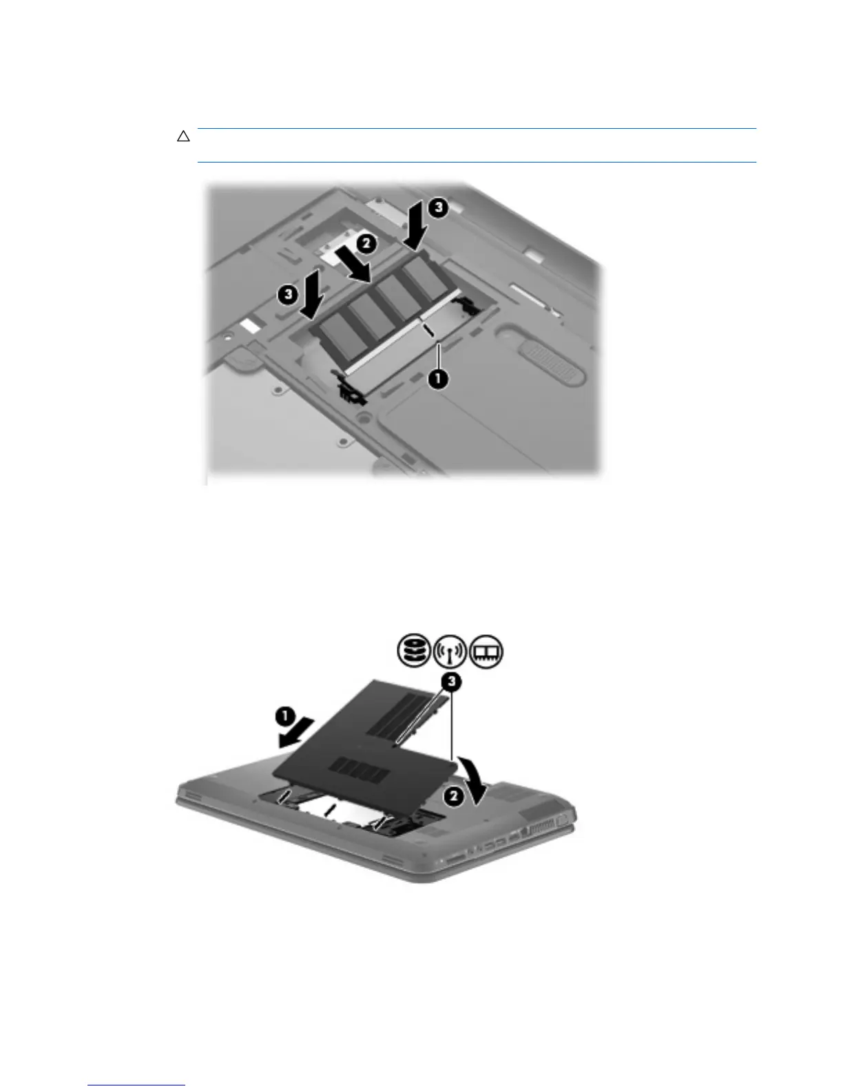 c. Gently press the memory module (3) down, applying pressure to both the left and right edges