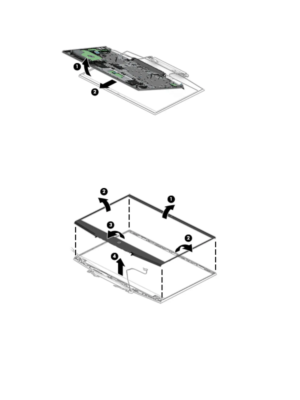 a. Release the top edge of the display bezel (1) from the display assembly.
