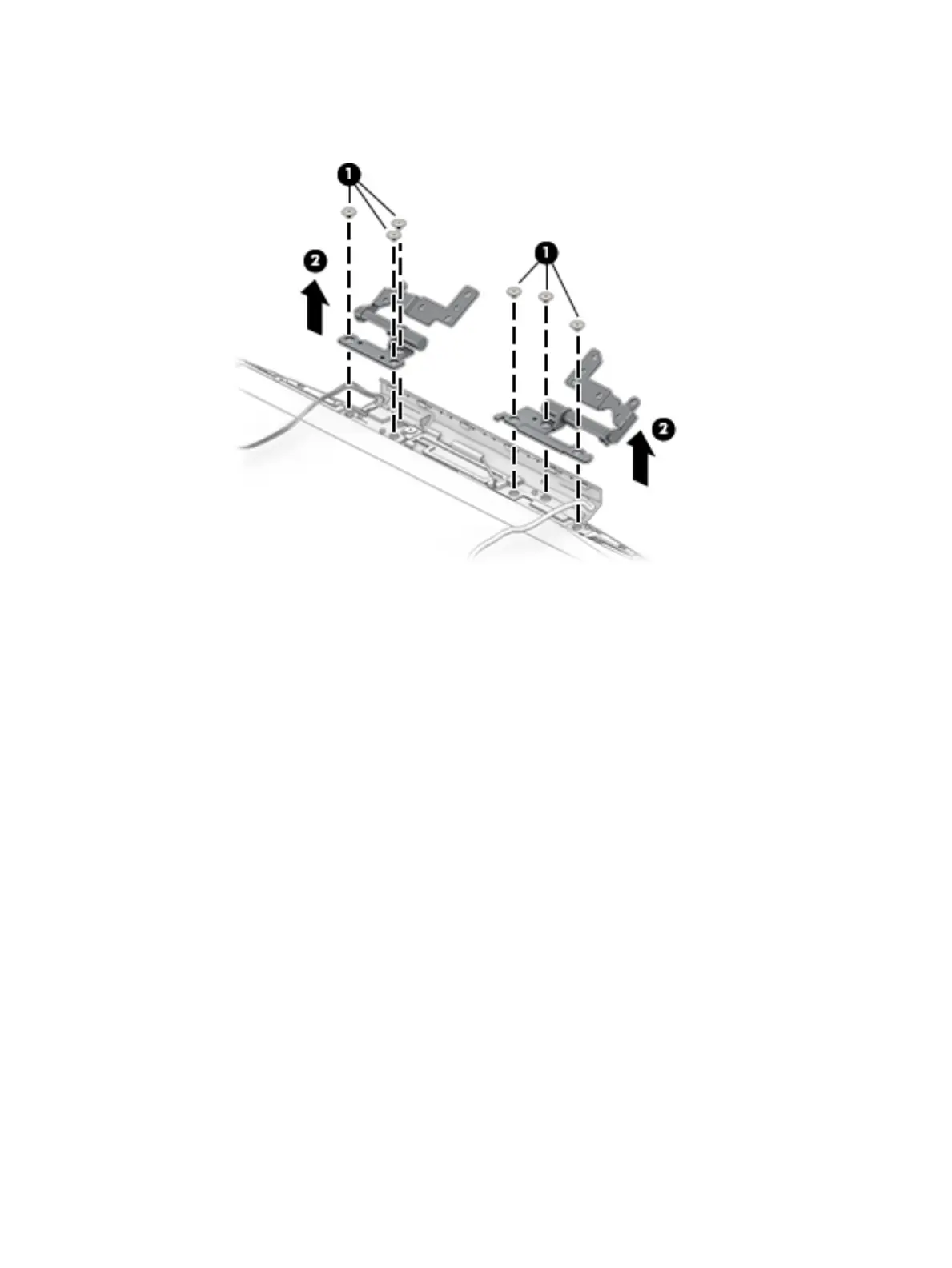 c. Remove the display hinges (2).