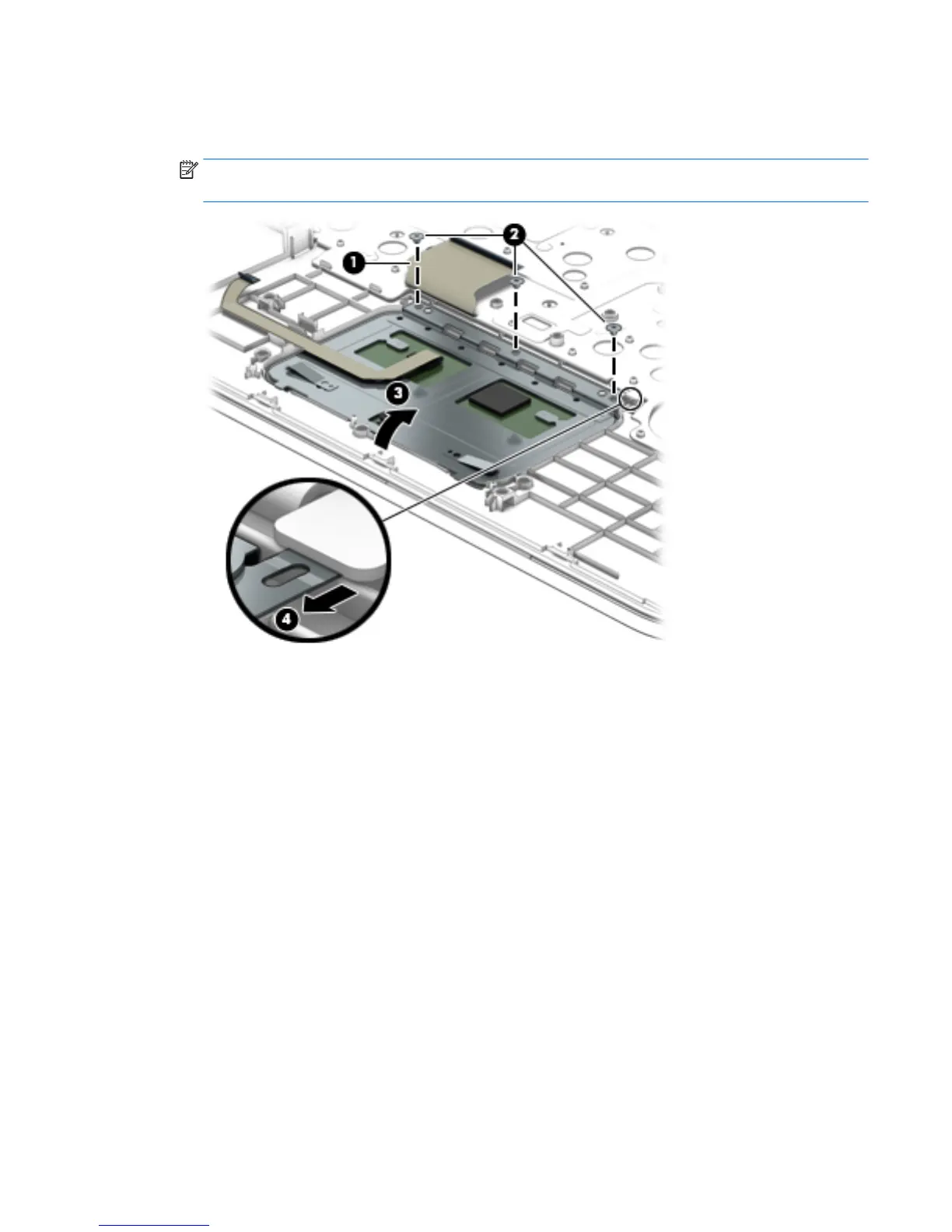 4. Remove the three broadhead Phillips PM2.0×2.0 screws (2) that secure the TouchPad to the computer.