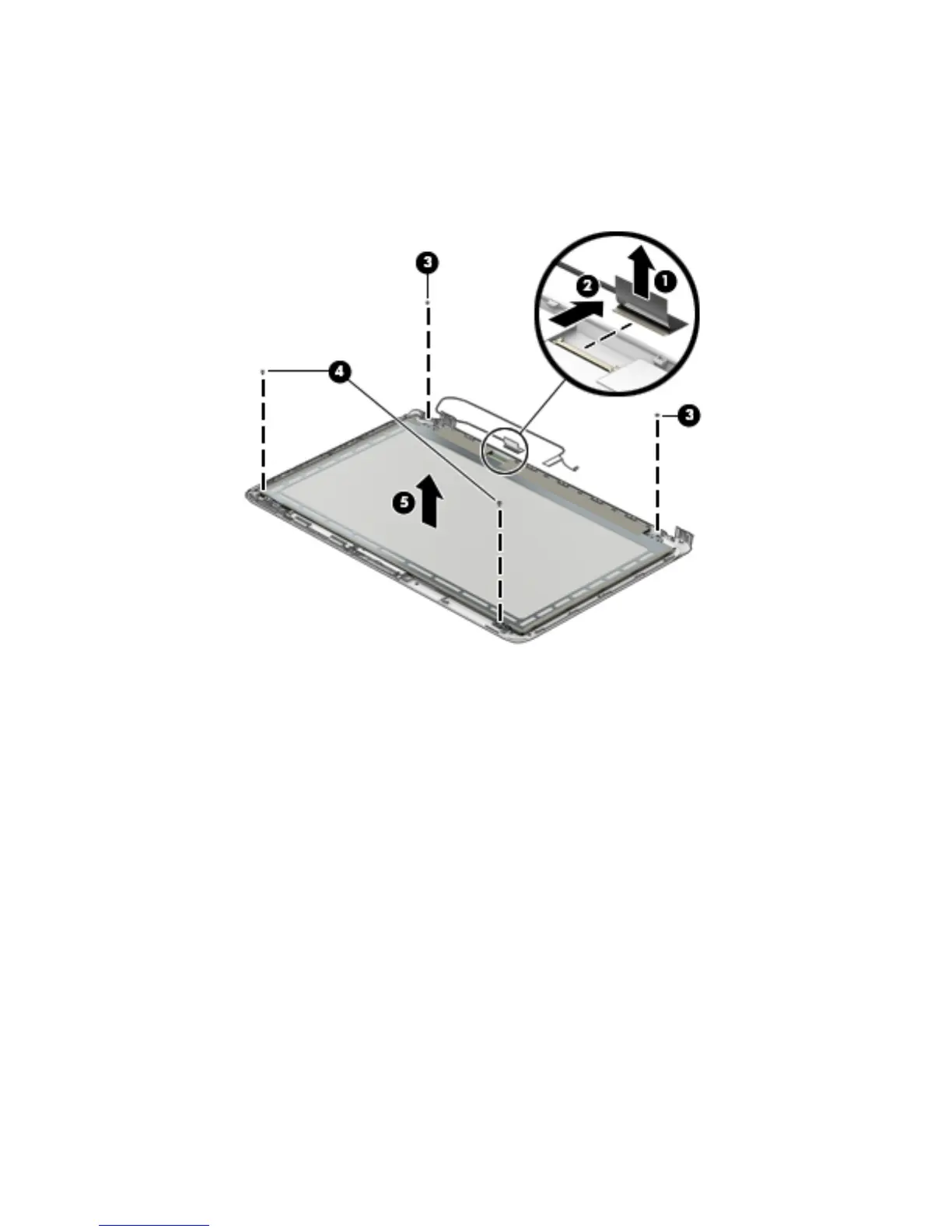 f. On the back of the display panel, release the adhesive strip (2) that secures the display panel cable