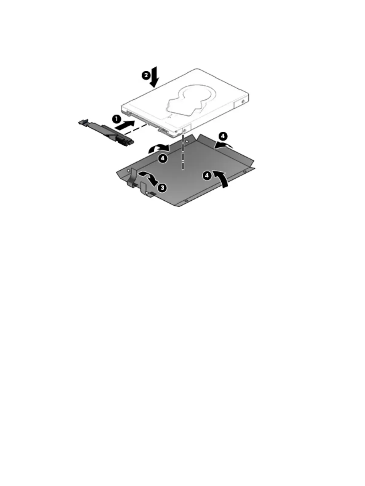 5. If it is necessary to install foil on the hard drive, insert the connector onto the rear of the drive (1), center