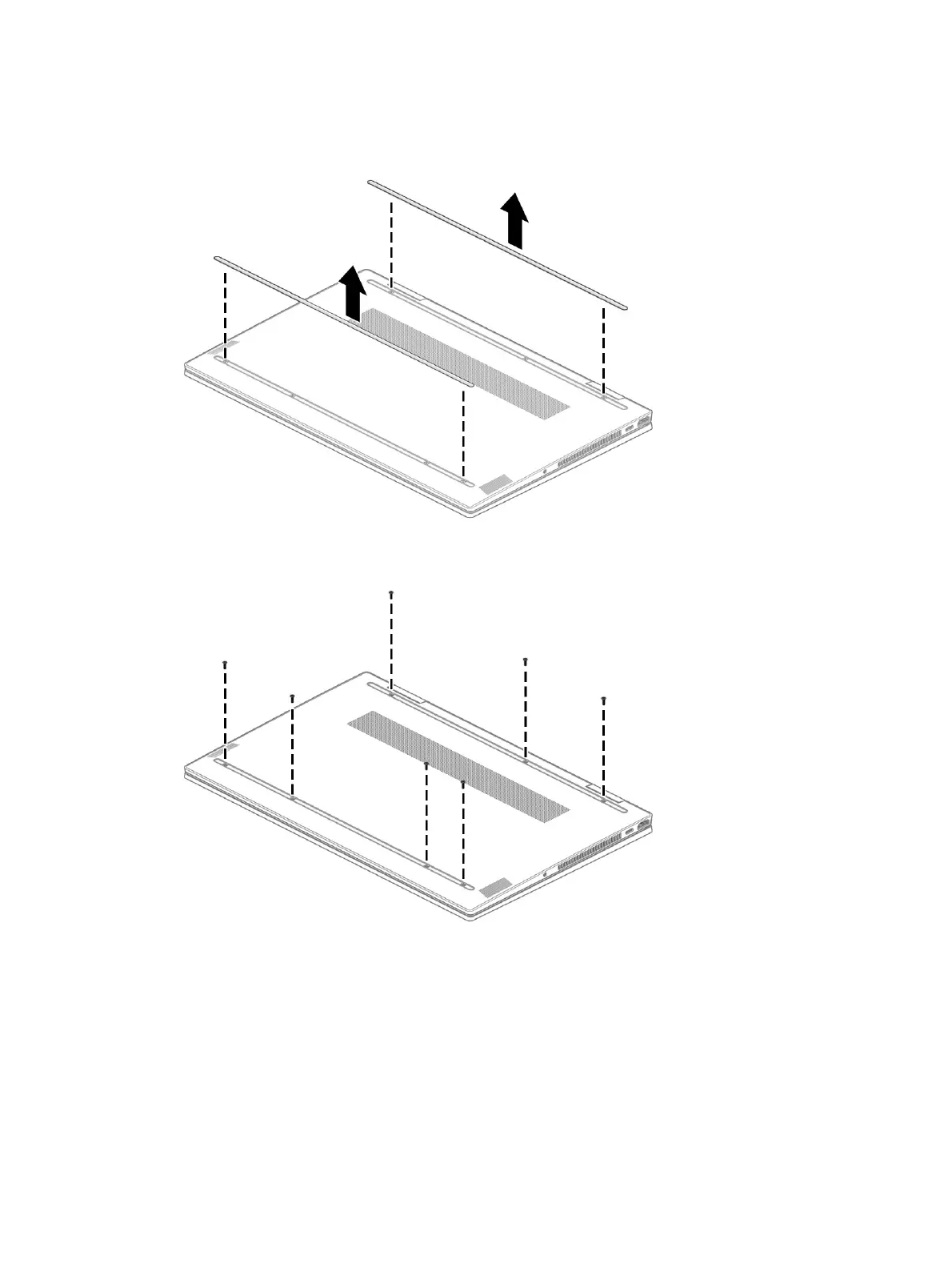 2. Remove the seven Phillips 2.0 × 6.0 screws that secure the bottom cover to the computer.