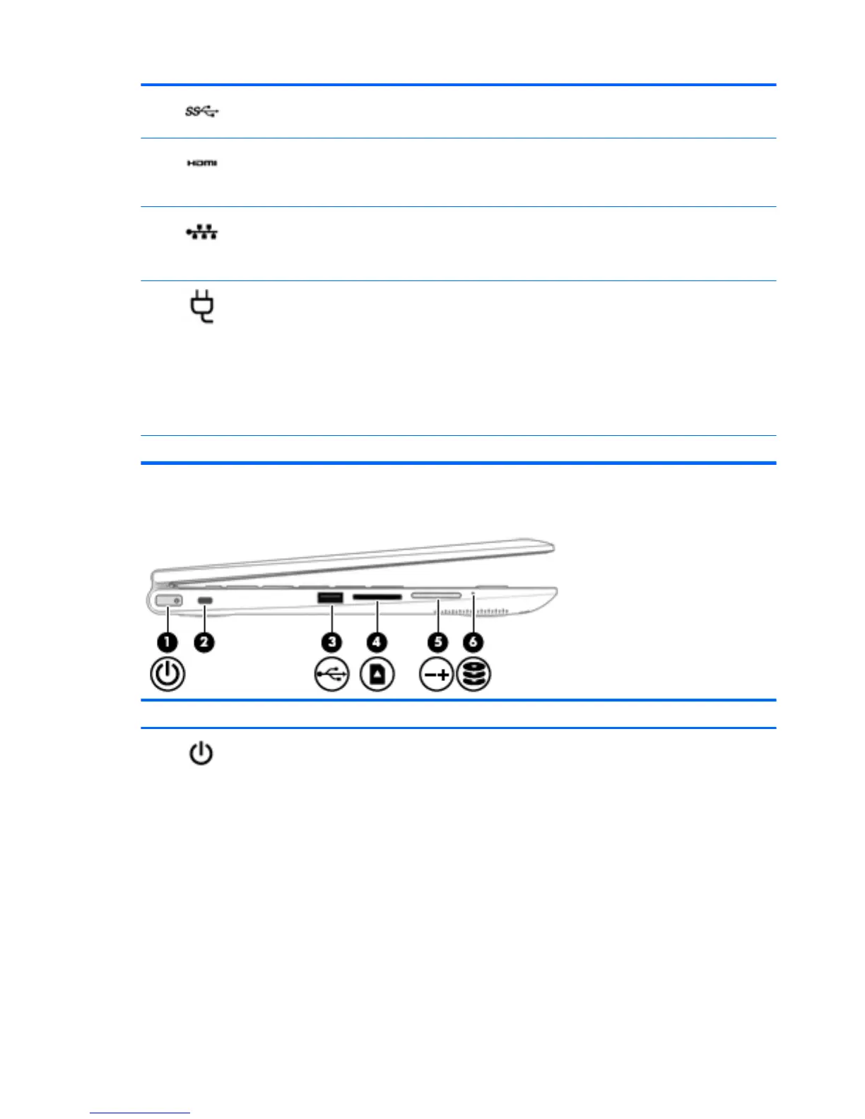 (4) USB 3.0 ports (2) Connect optional USB devices, such as a keyboard, mouse,
