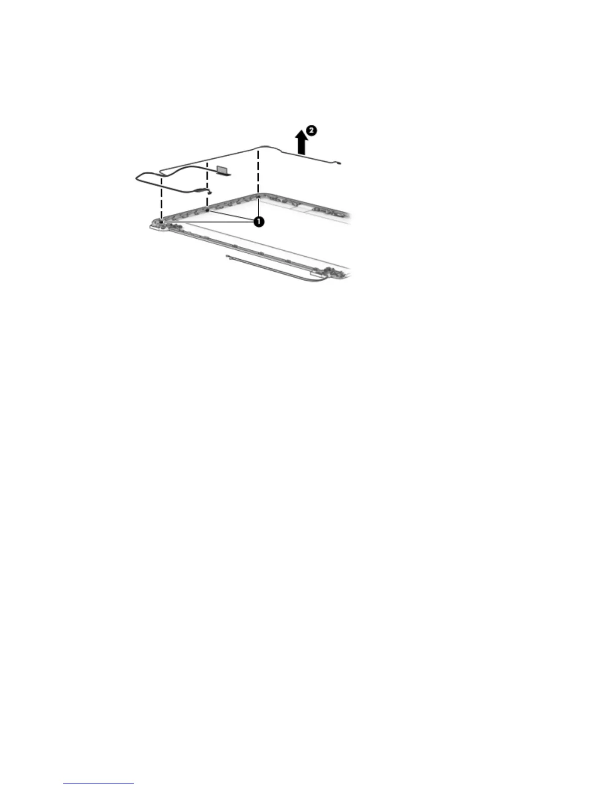 6. To remove the display/webcam cable, remove the cable from the clips built into the display enclosure