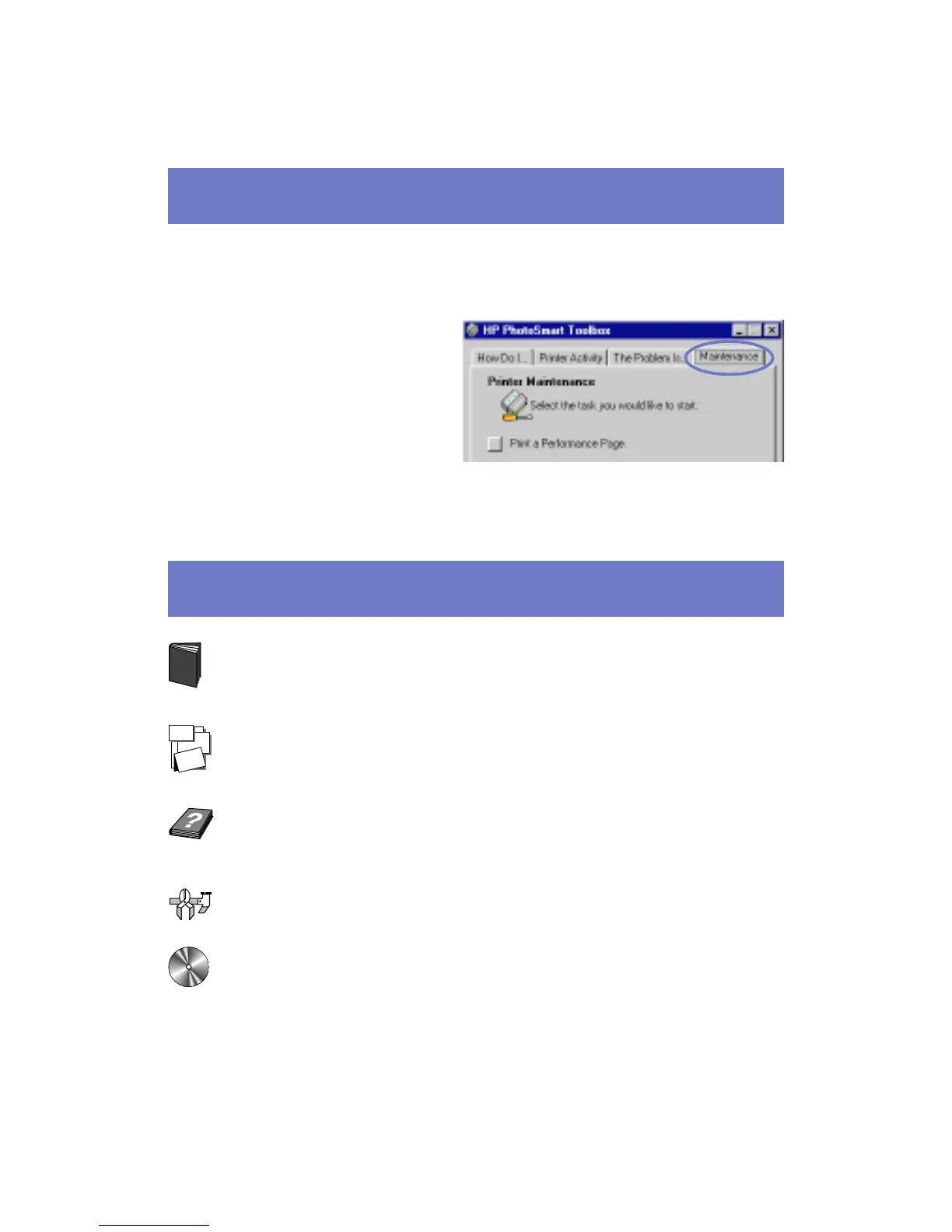 Toolbox - The HP PhotoSmart photo printer’s Toolbox provides printer status