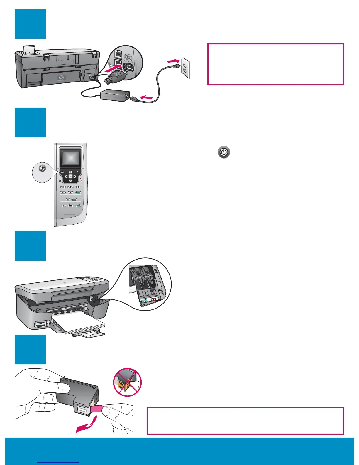 Pull the pink tab to remove the tape from both print cartridges.