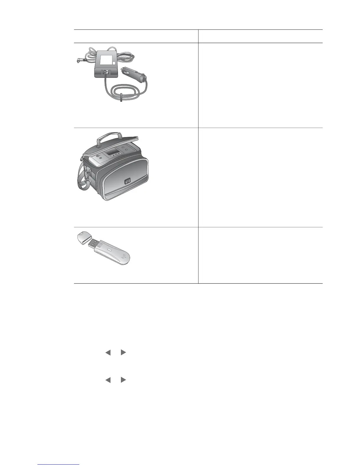 Accessory name Description